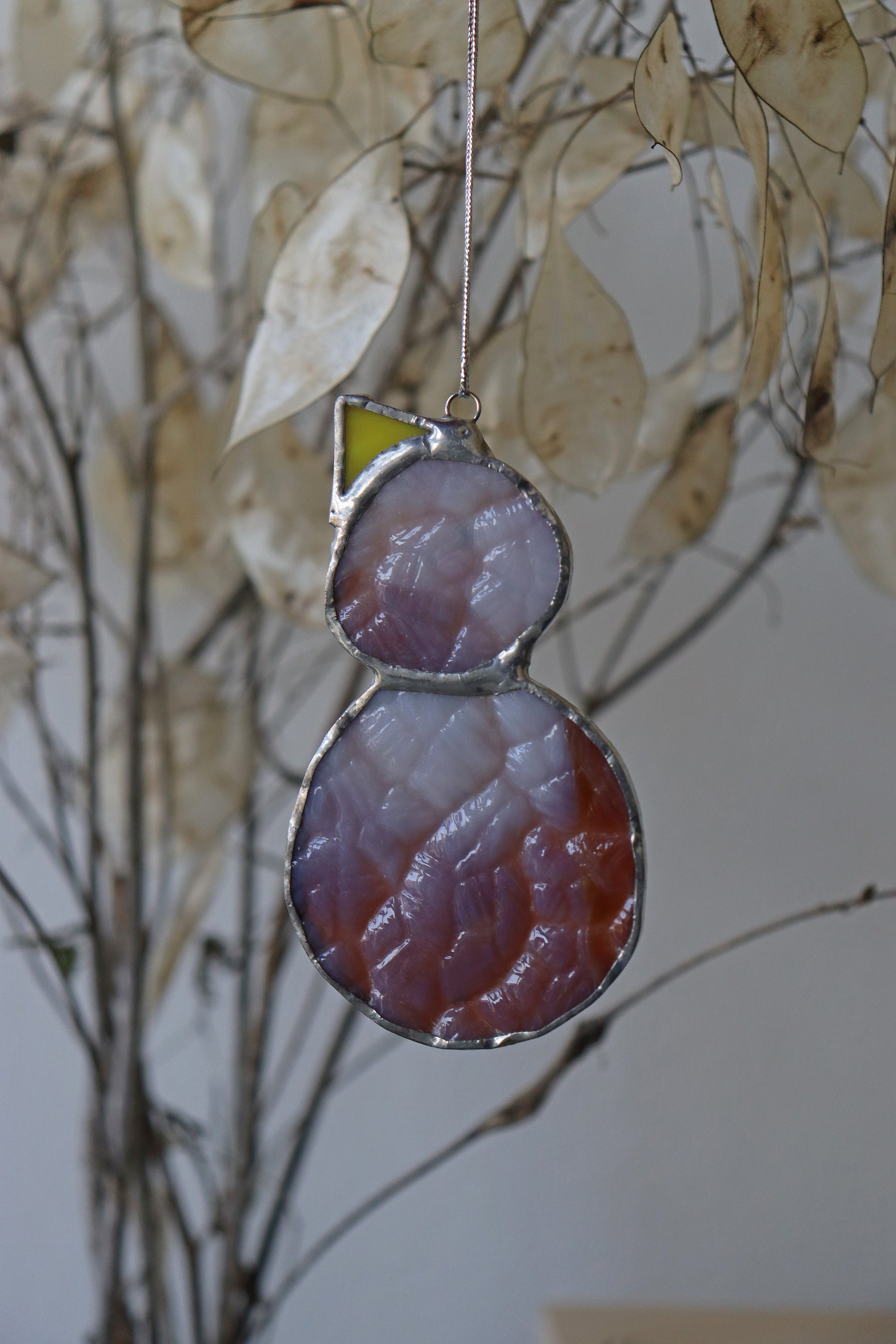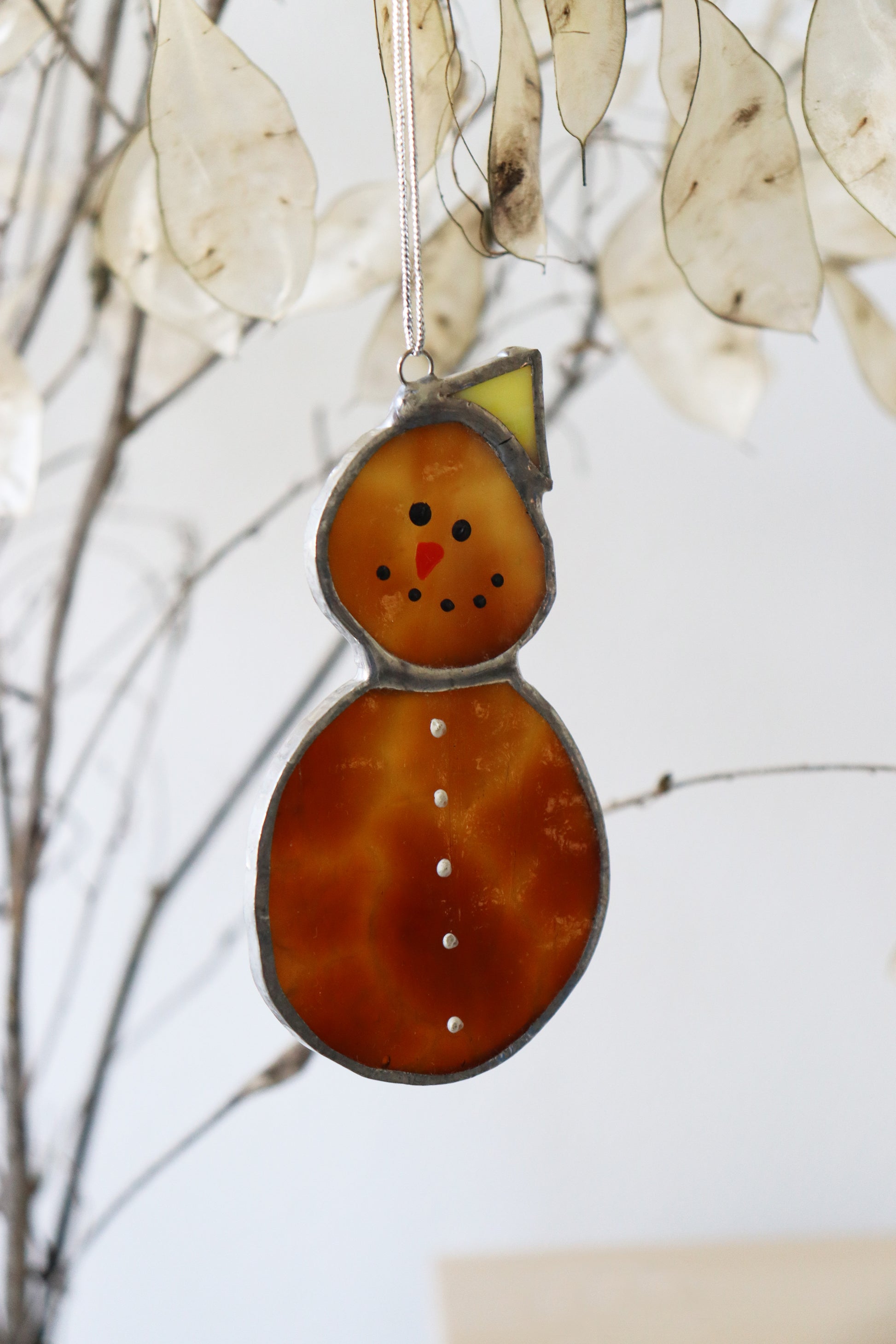 The ornament is made with brown textural glass