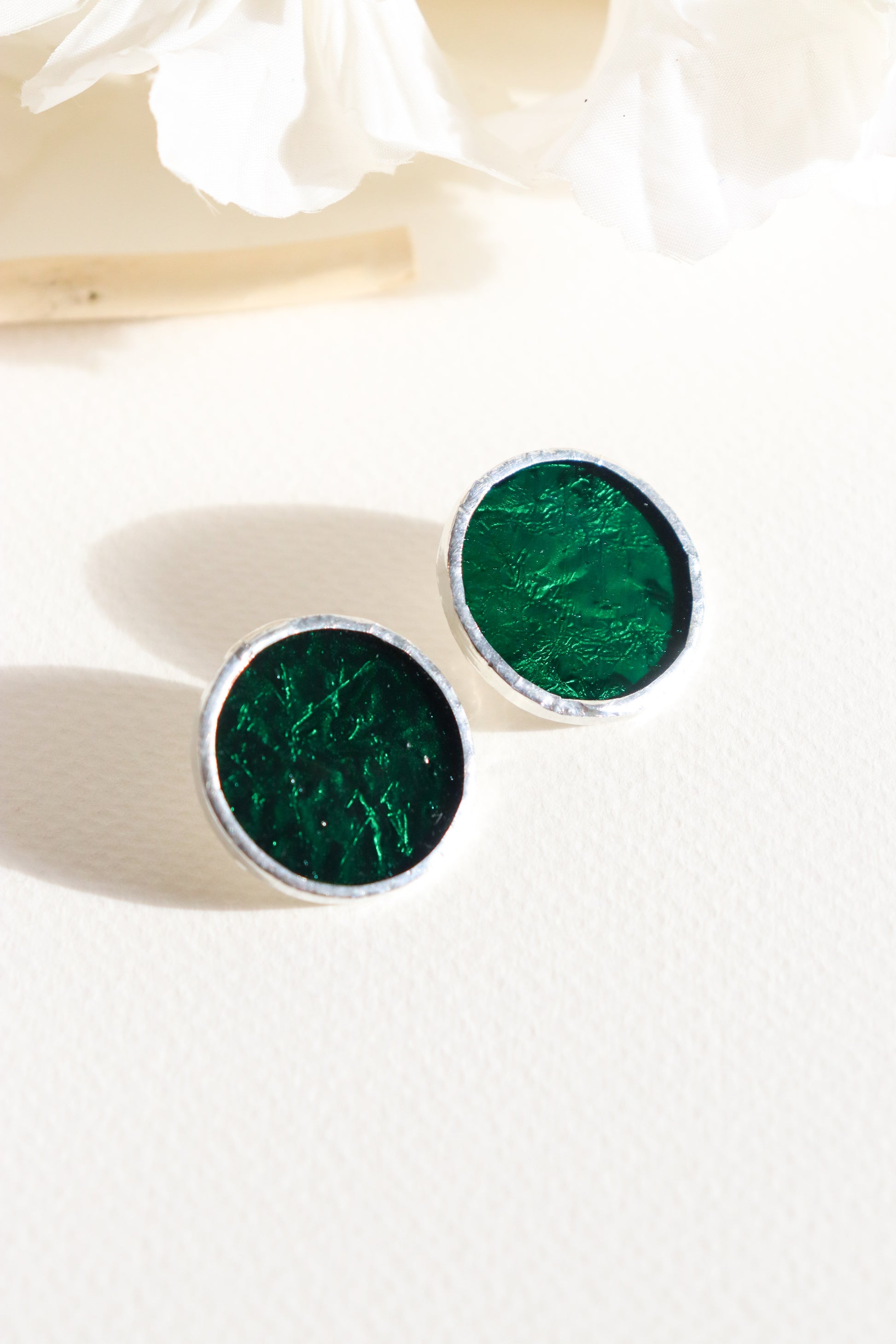 Material: Spectrum glass covered in lead-free solder with nickel free metal earring post and stainless steel earring back