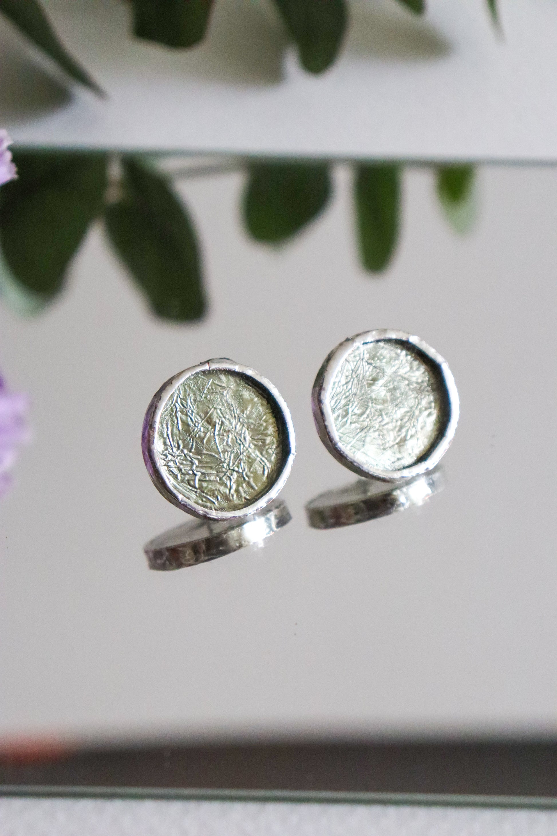 Material: Spectrum glass covered in lead-free solder with nickel free metal earring post and stainless steel earring back
