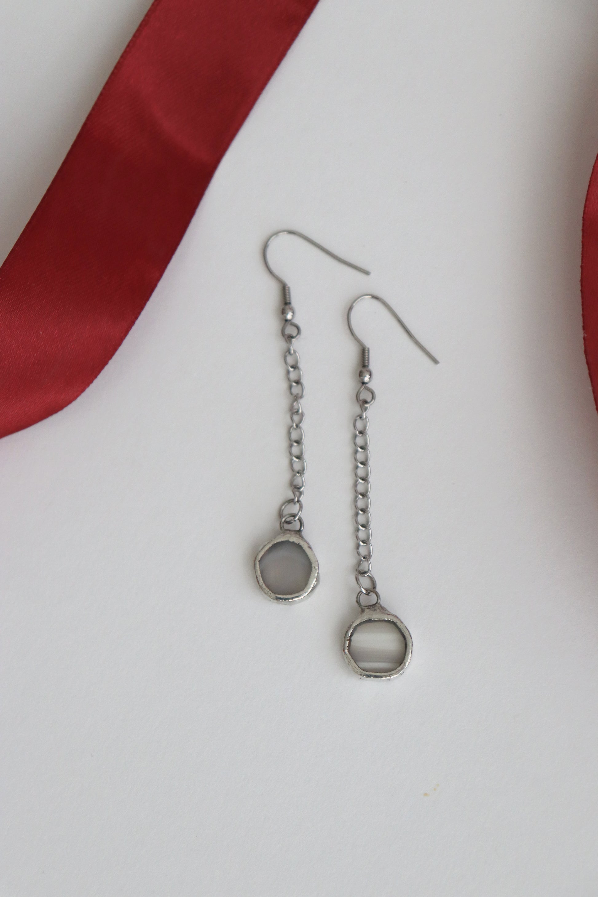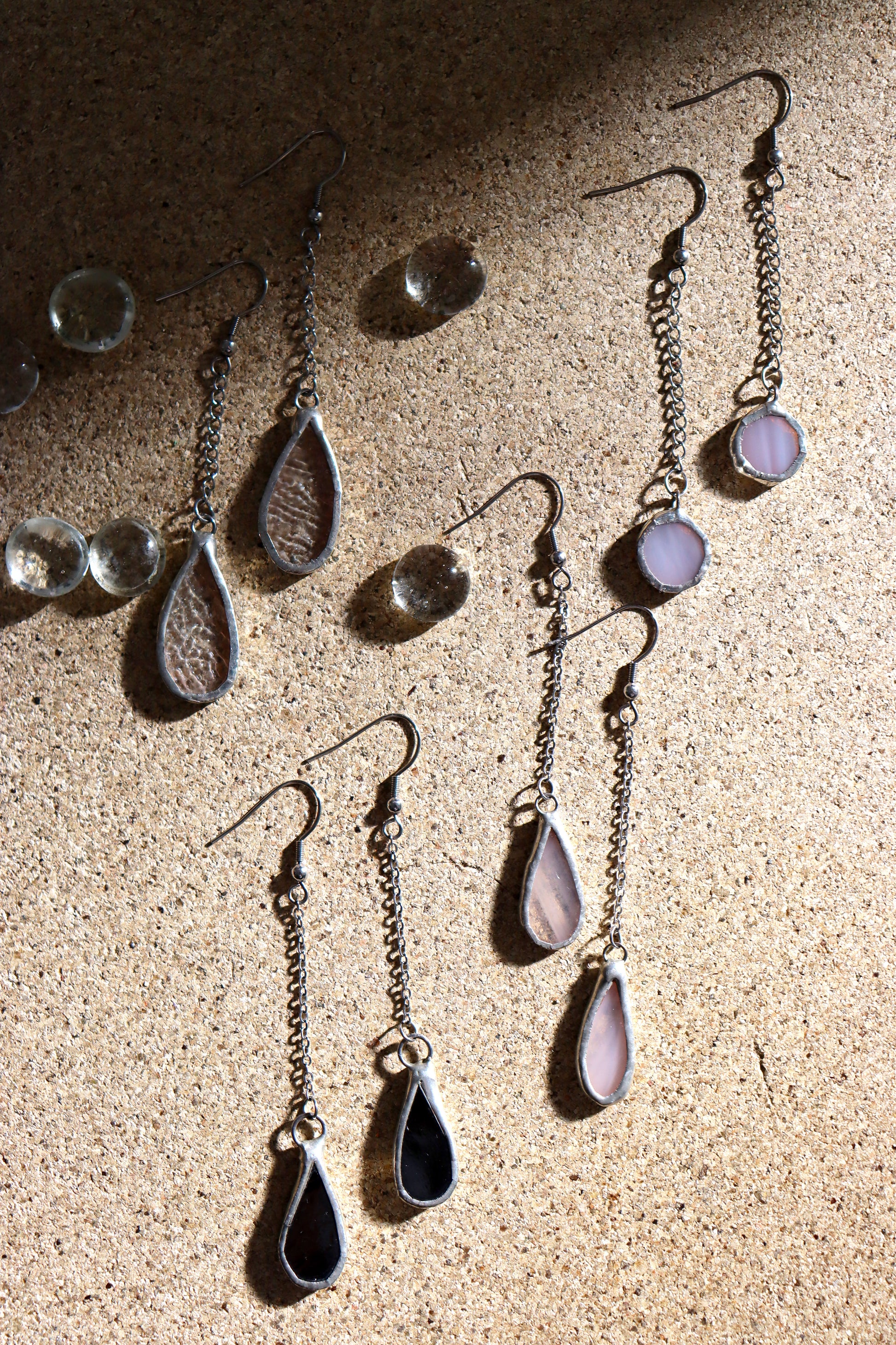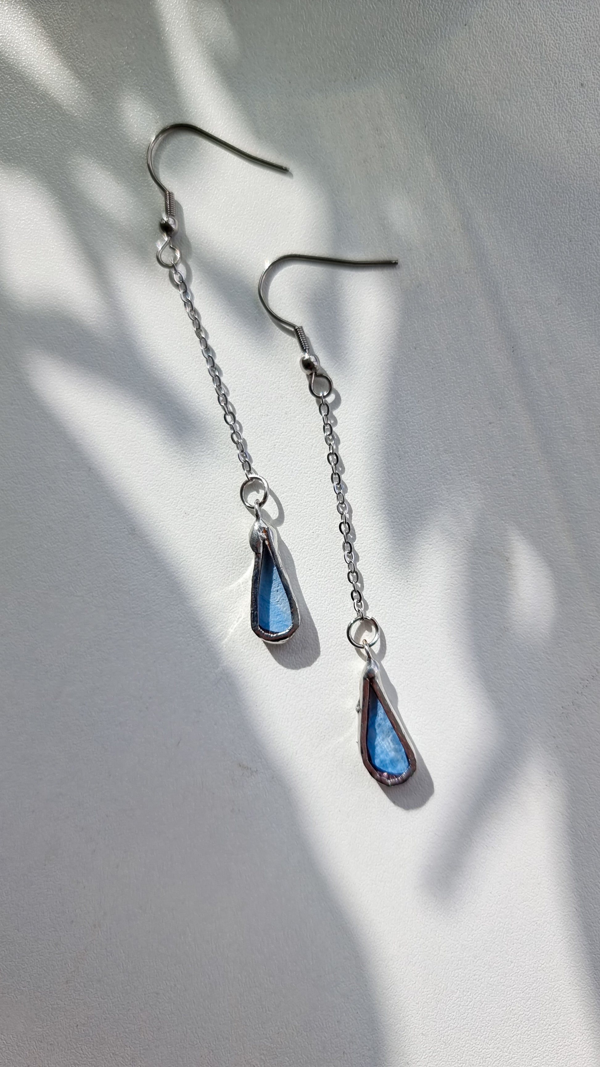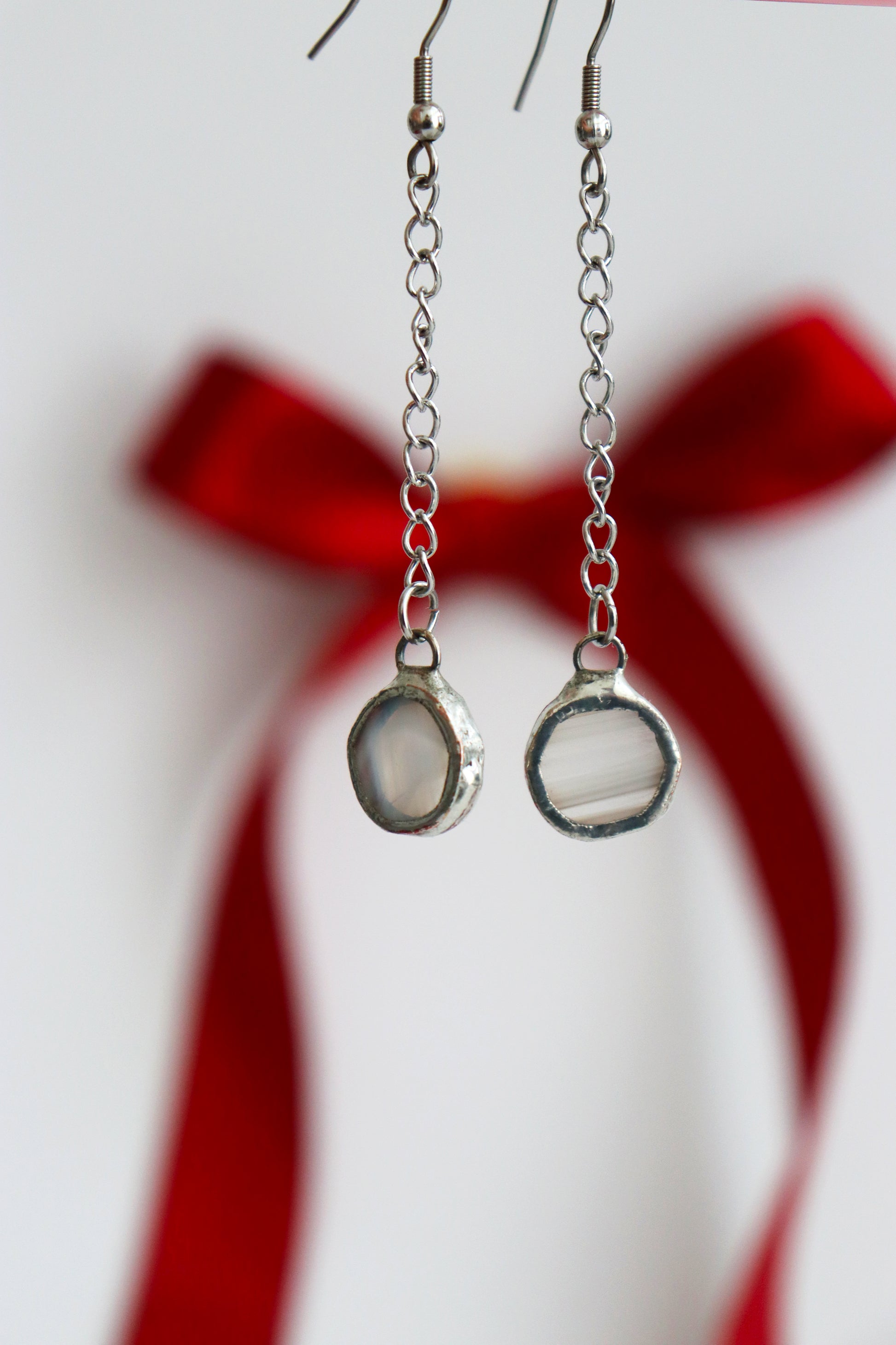 Glass is covered in lead-free solder with stainless steel ear wire hooks