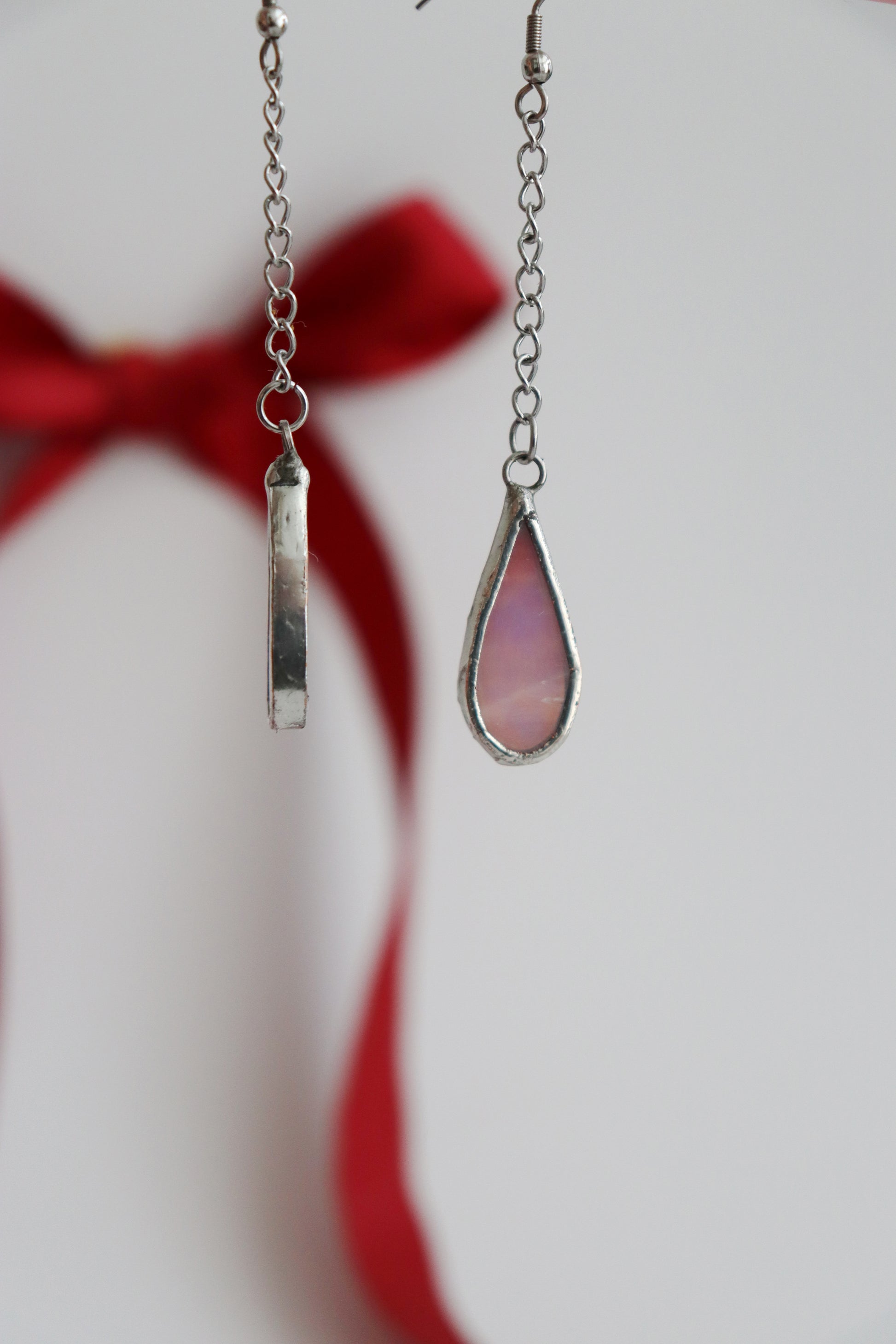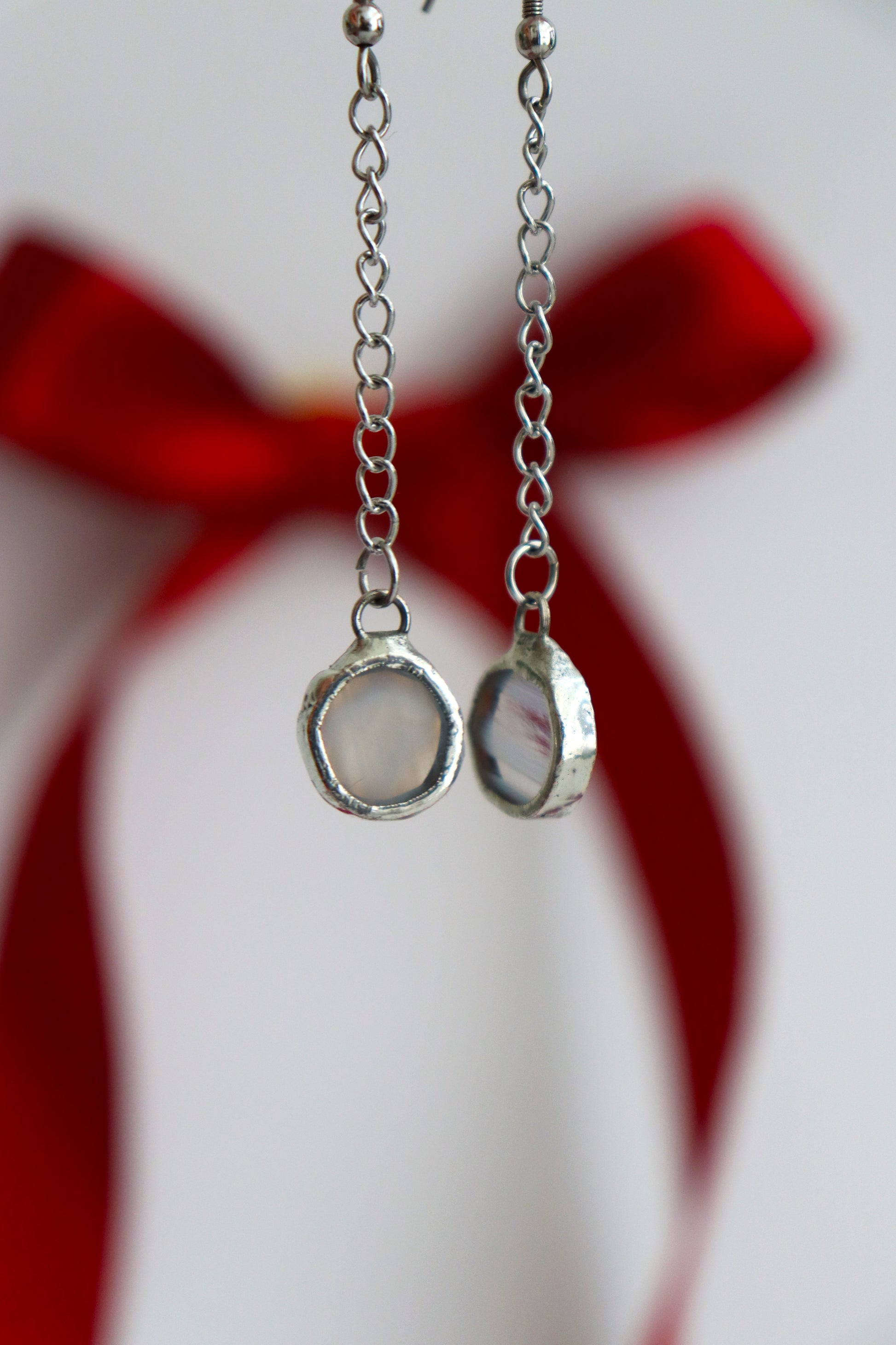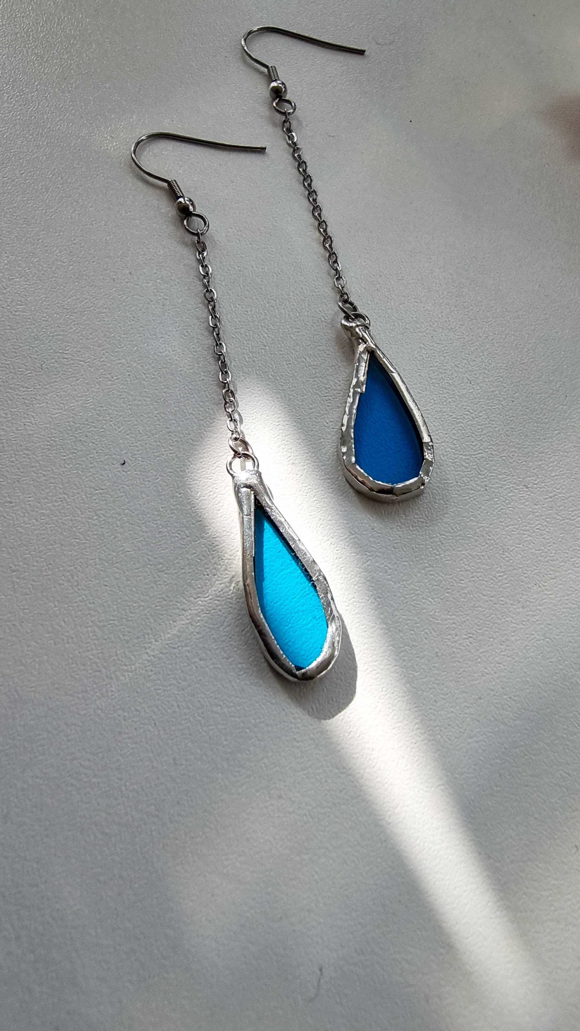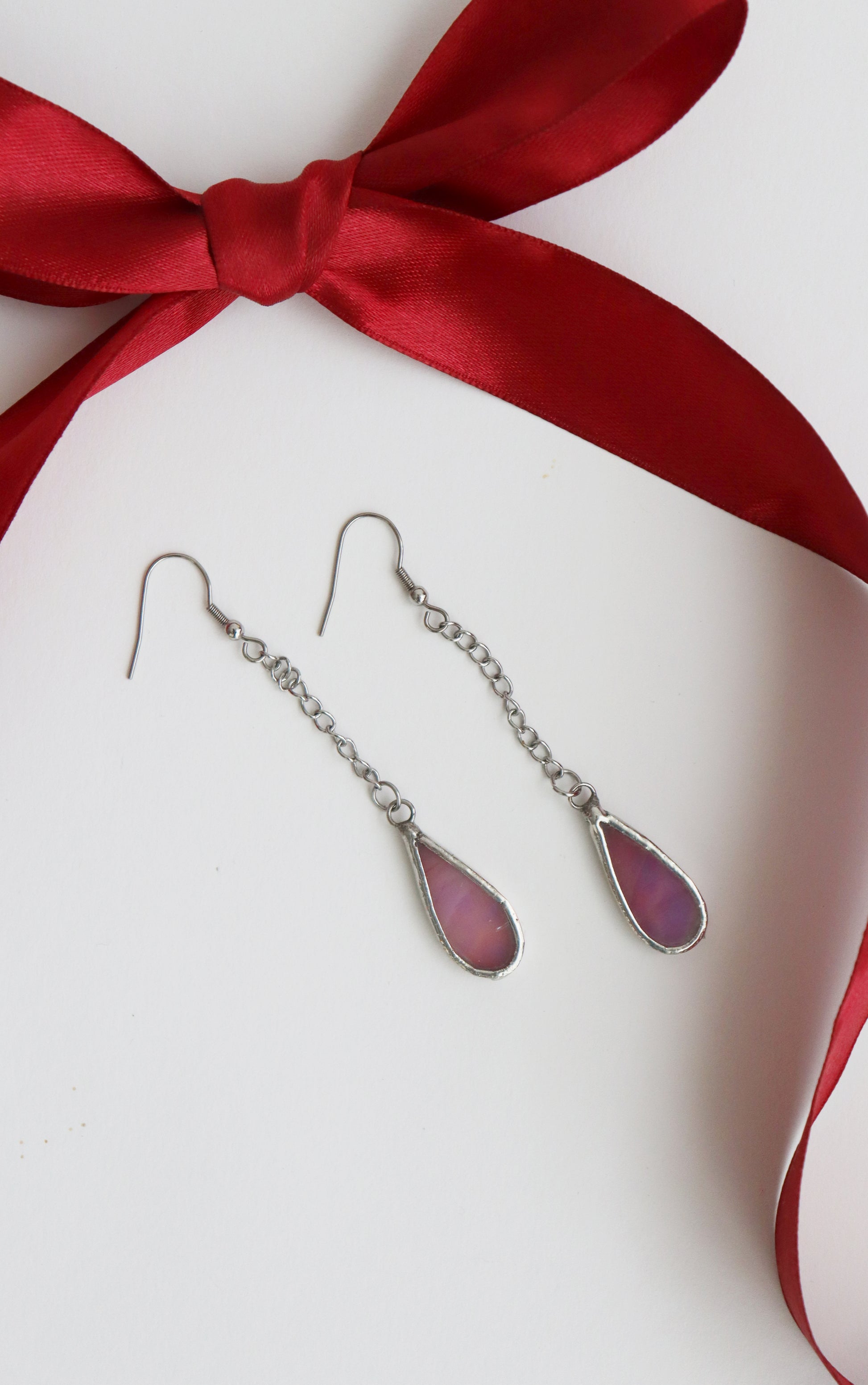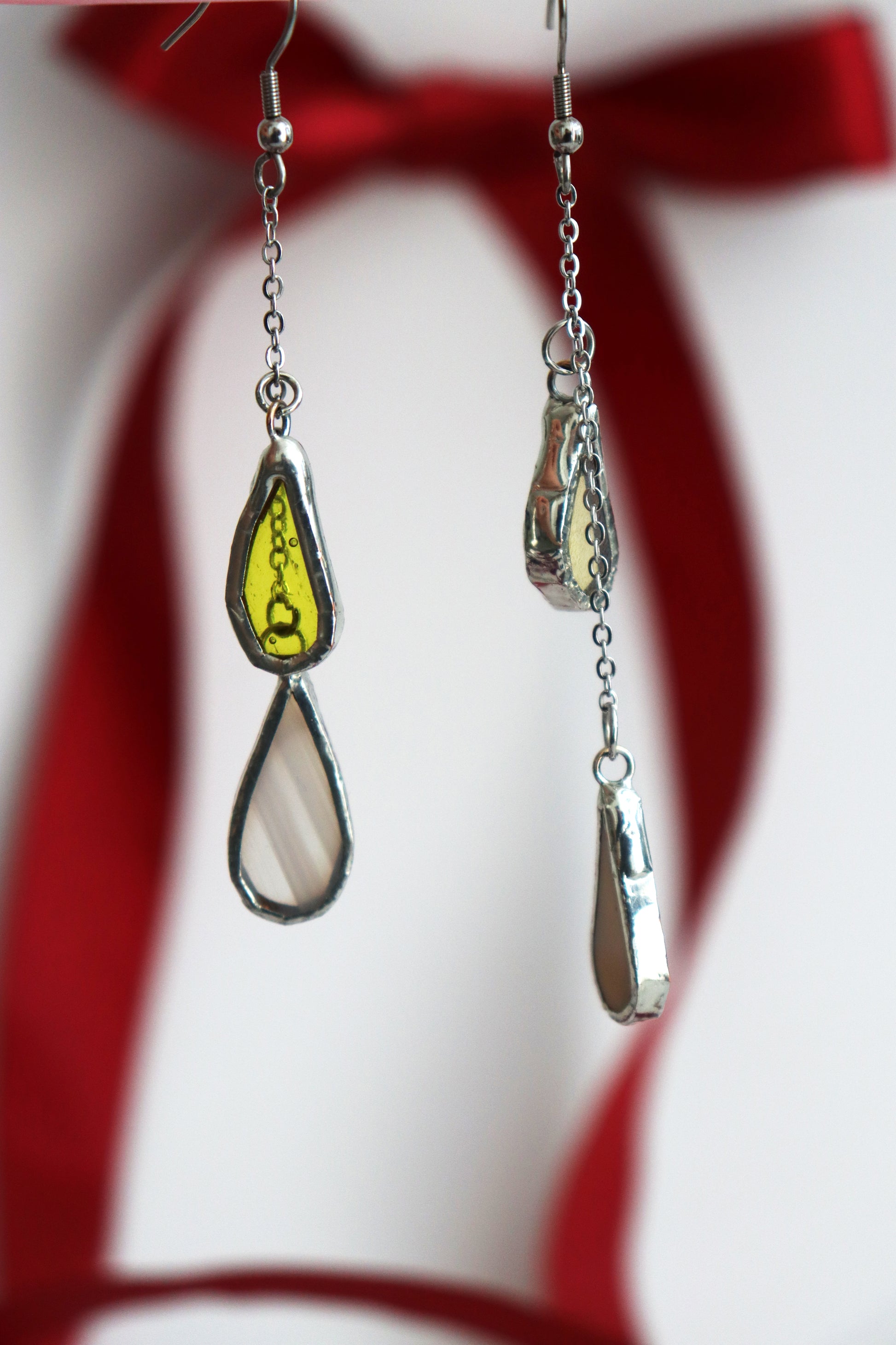 Glass is covered in lead-free solder with stainless steel ear wire hooks