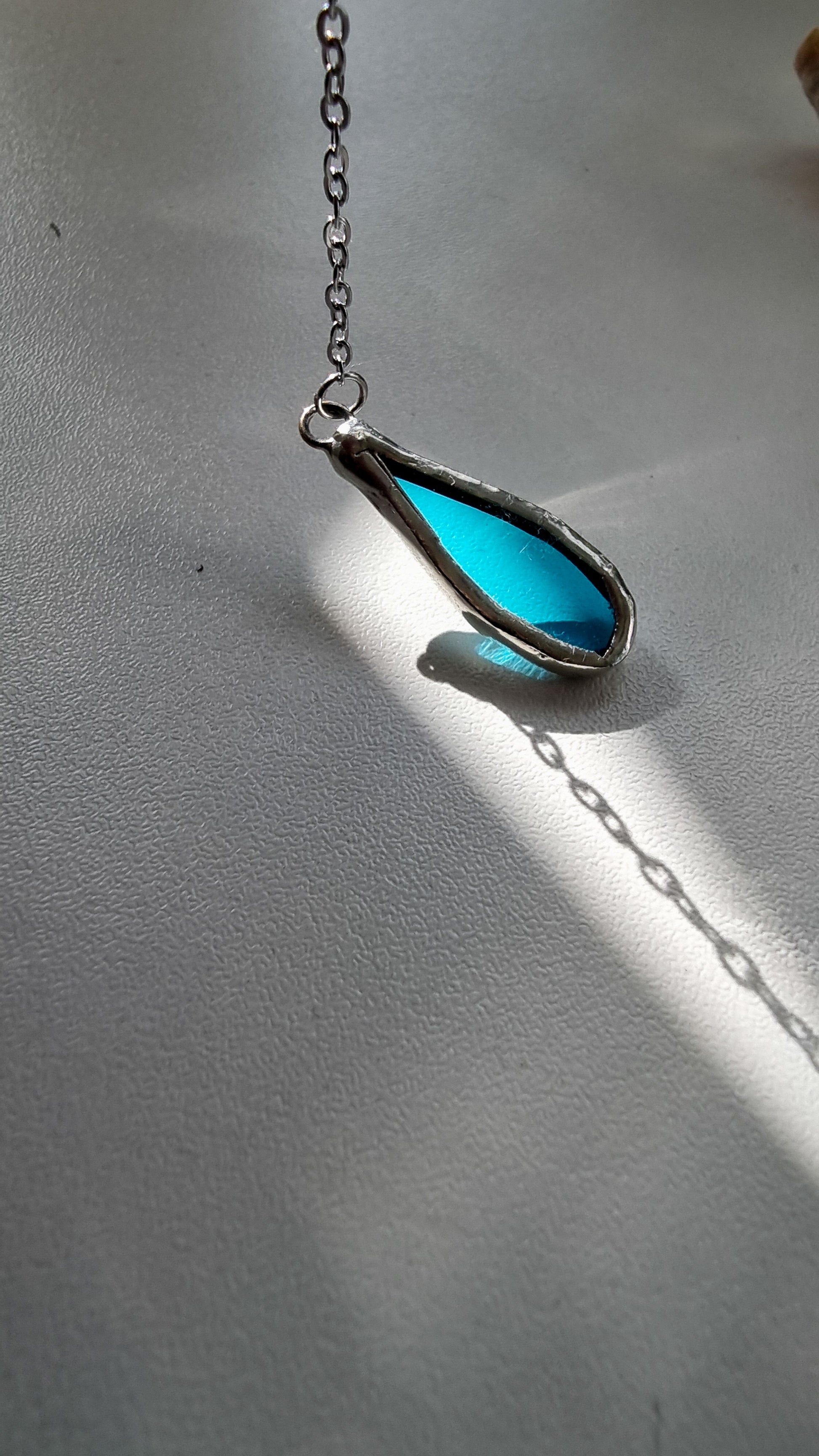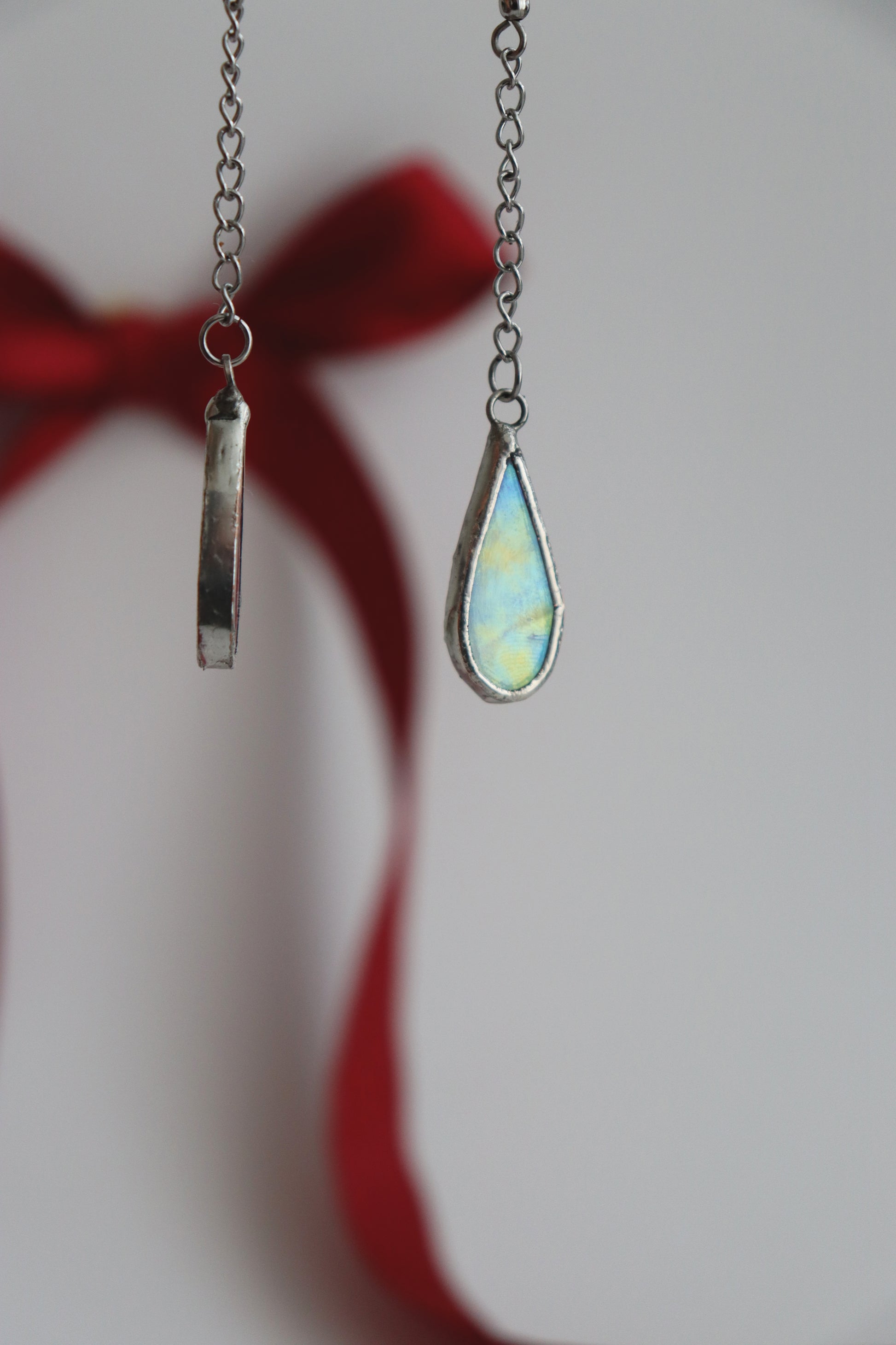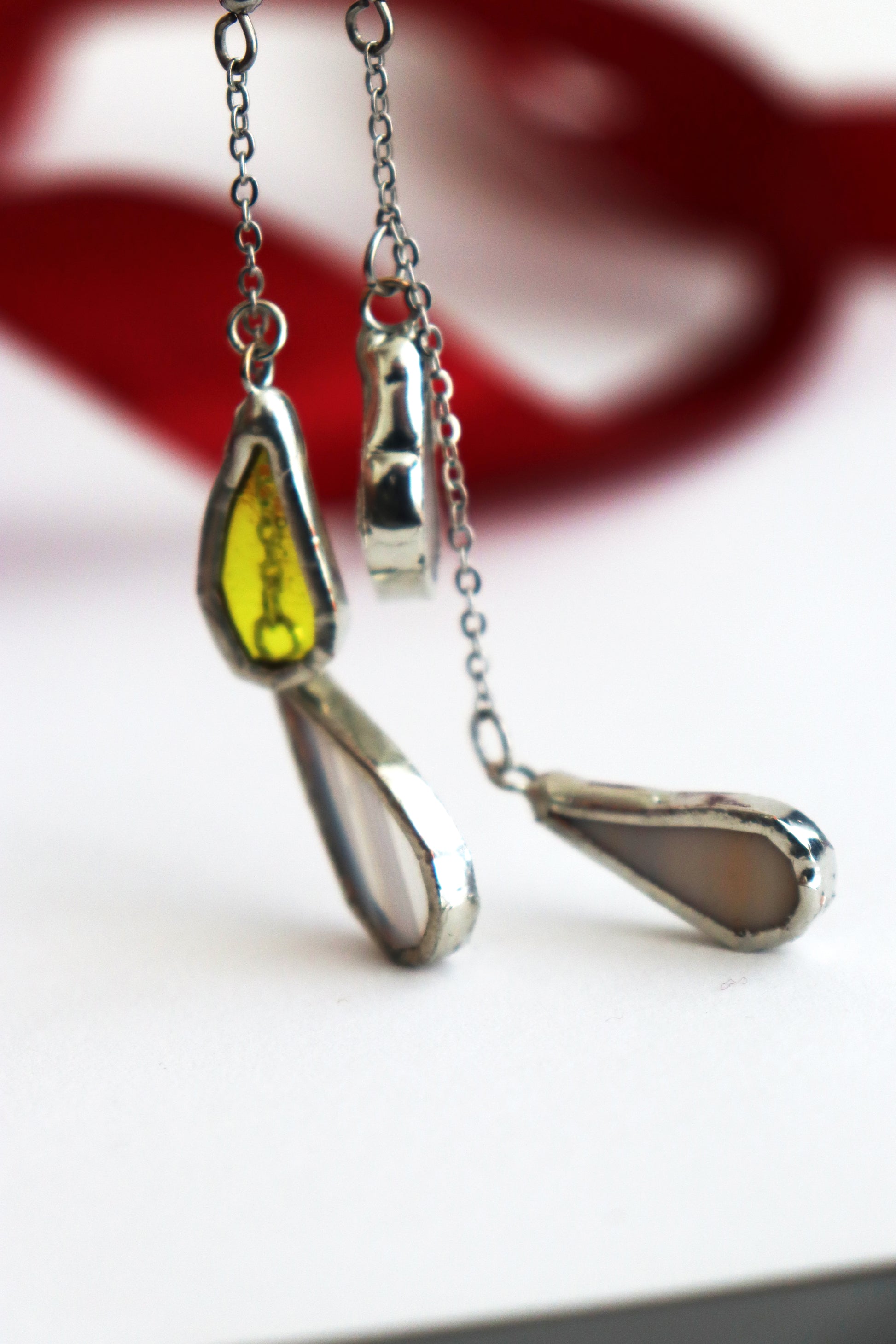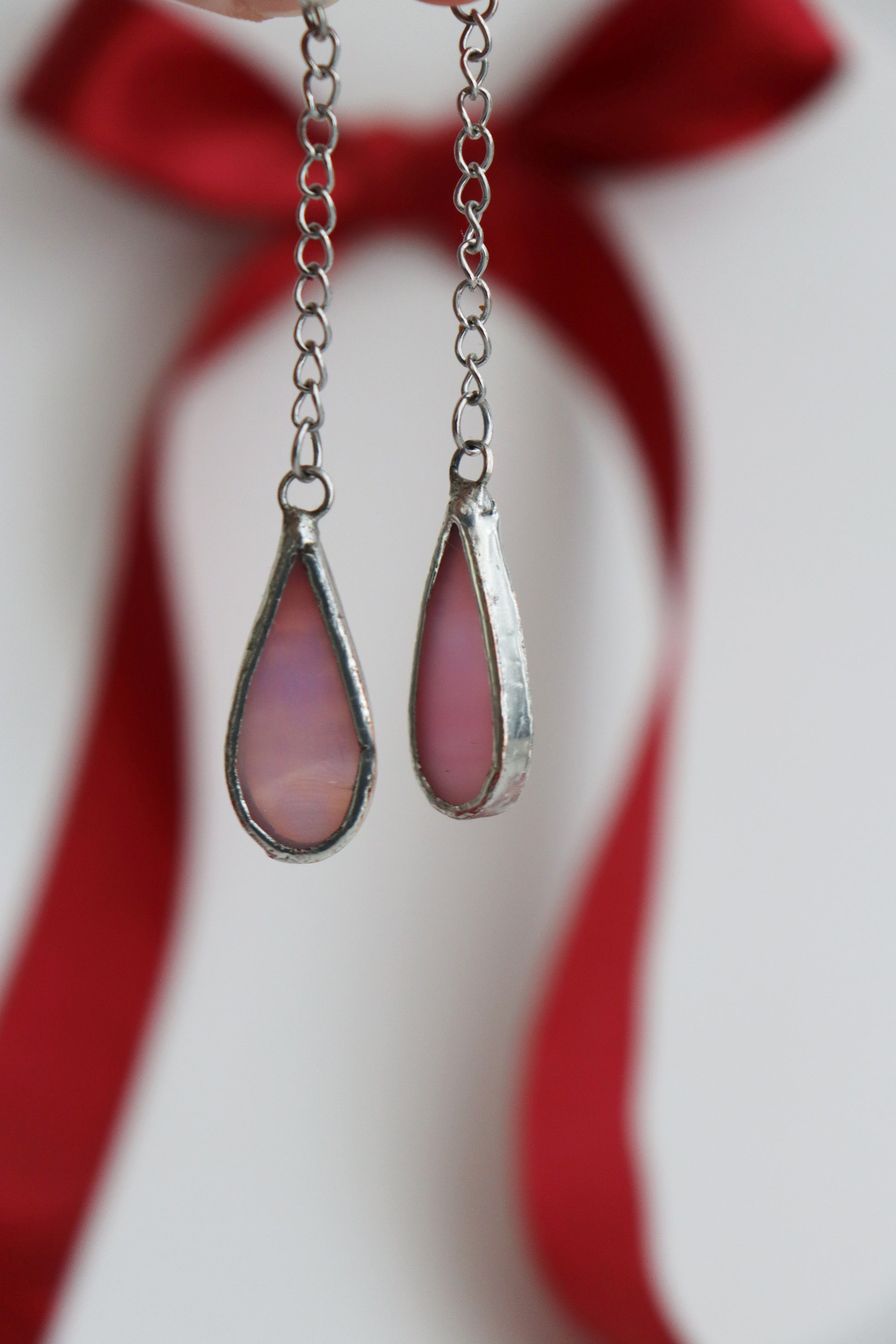 Glass is covered in lead-free solder with stainless steel ear wire hooks