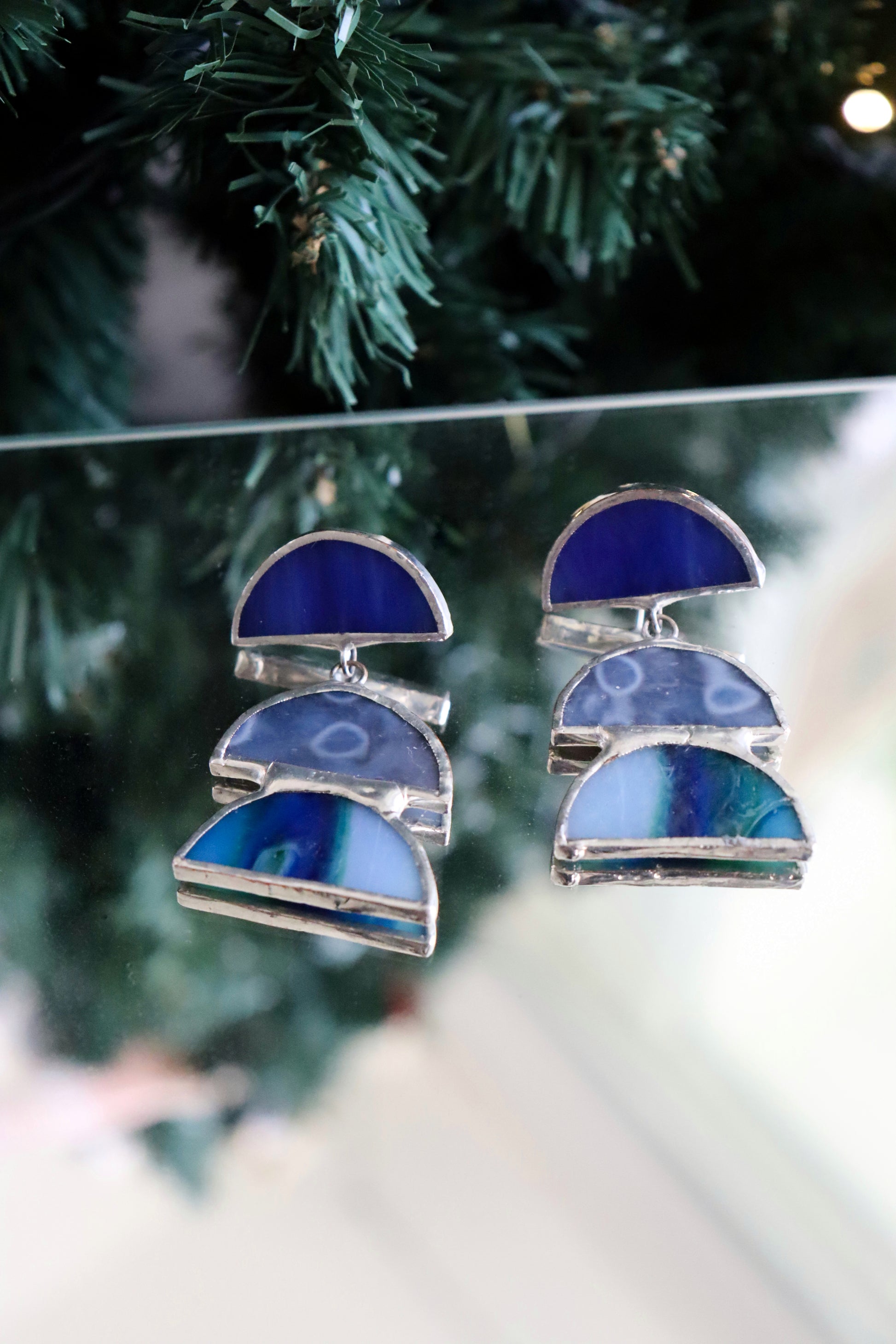 Glass is covered in lead-free solder with nickel free metal earring posts and butterfly backing
