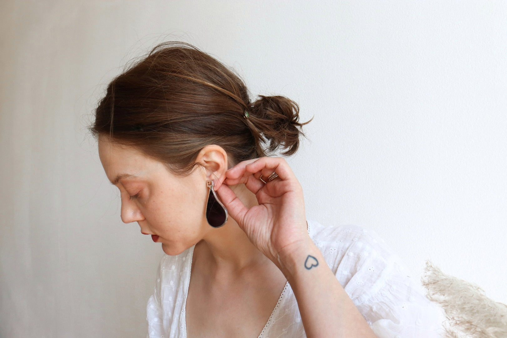 Black: size approx. 6.5 x 3 cm, Weight of one earring: 10.03 g