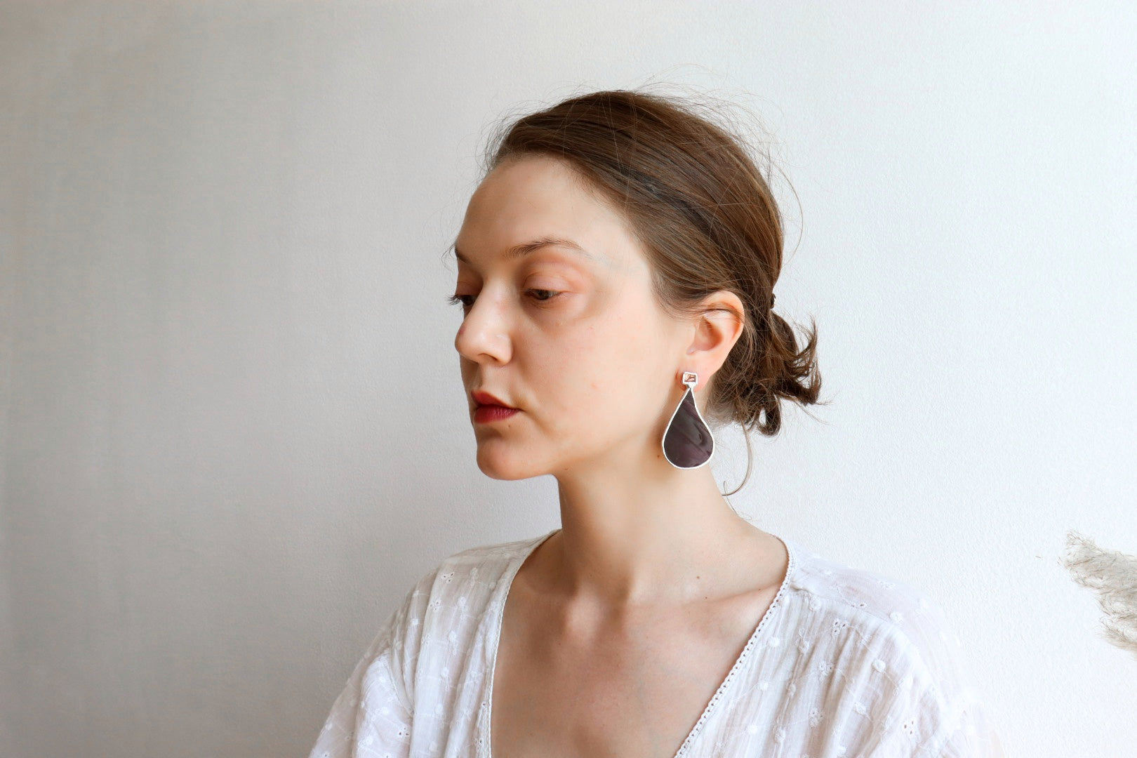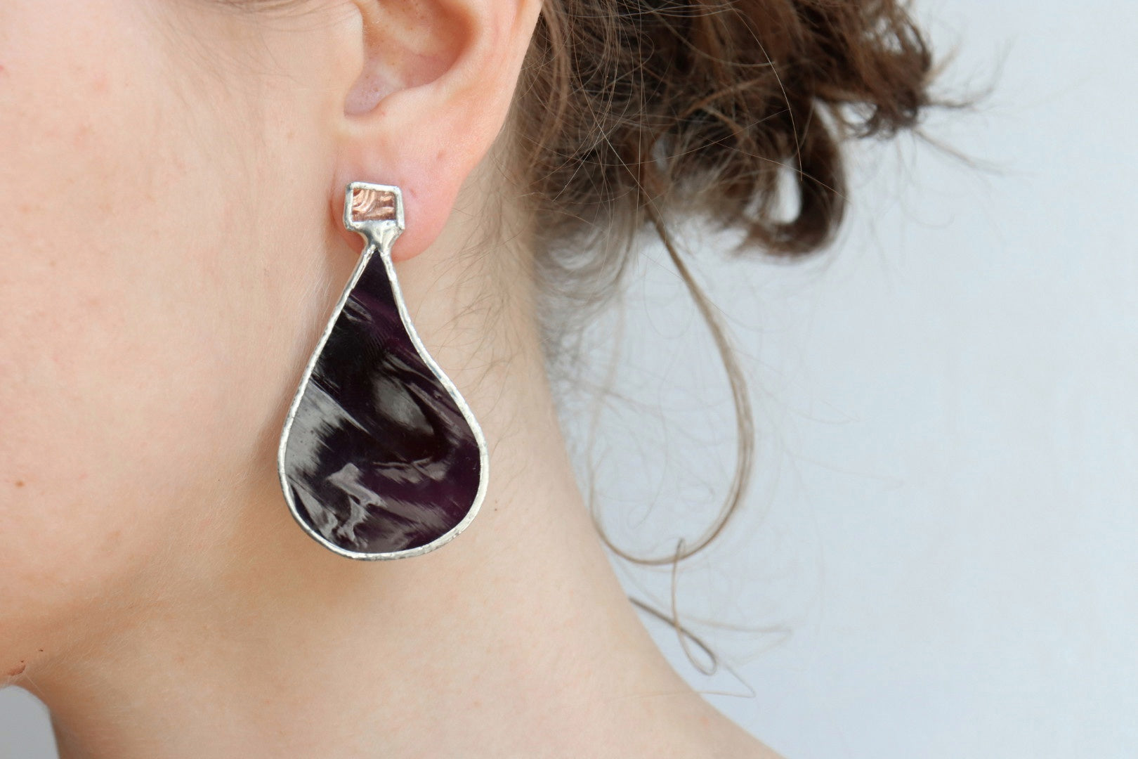 Purple: size approx. 5.5 x 3 cm, Weight of one earring: 7.64 g