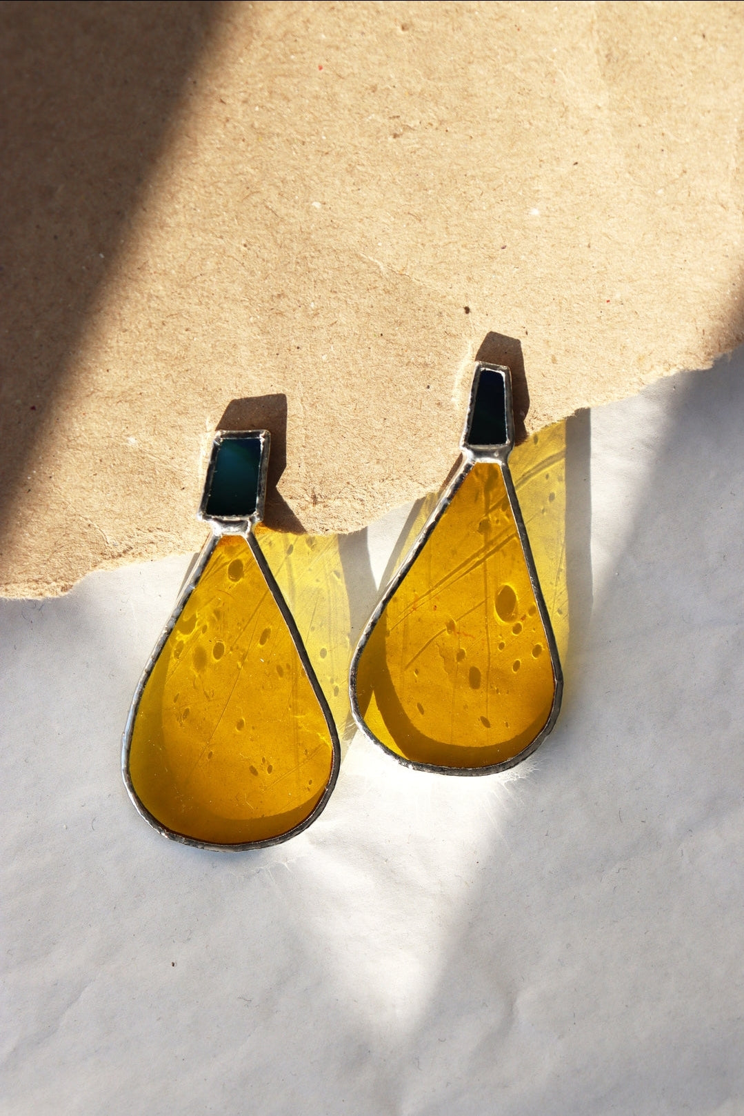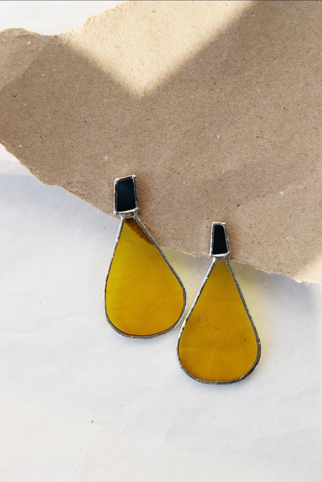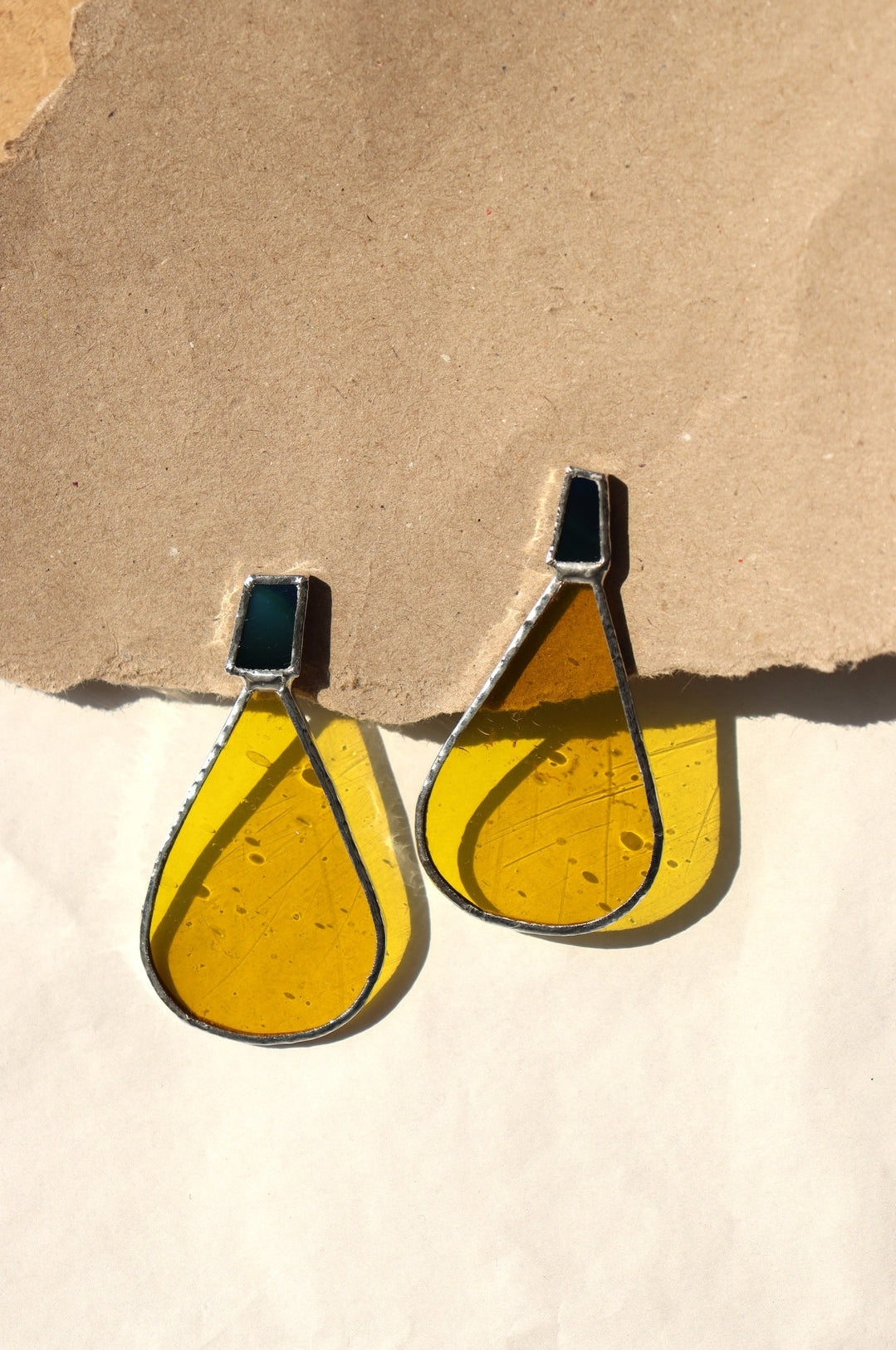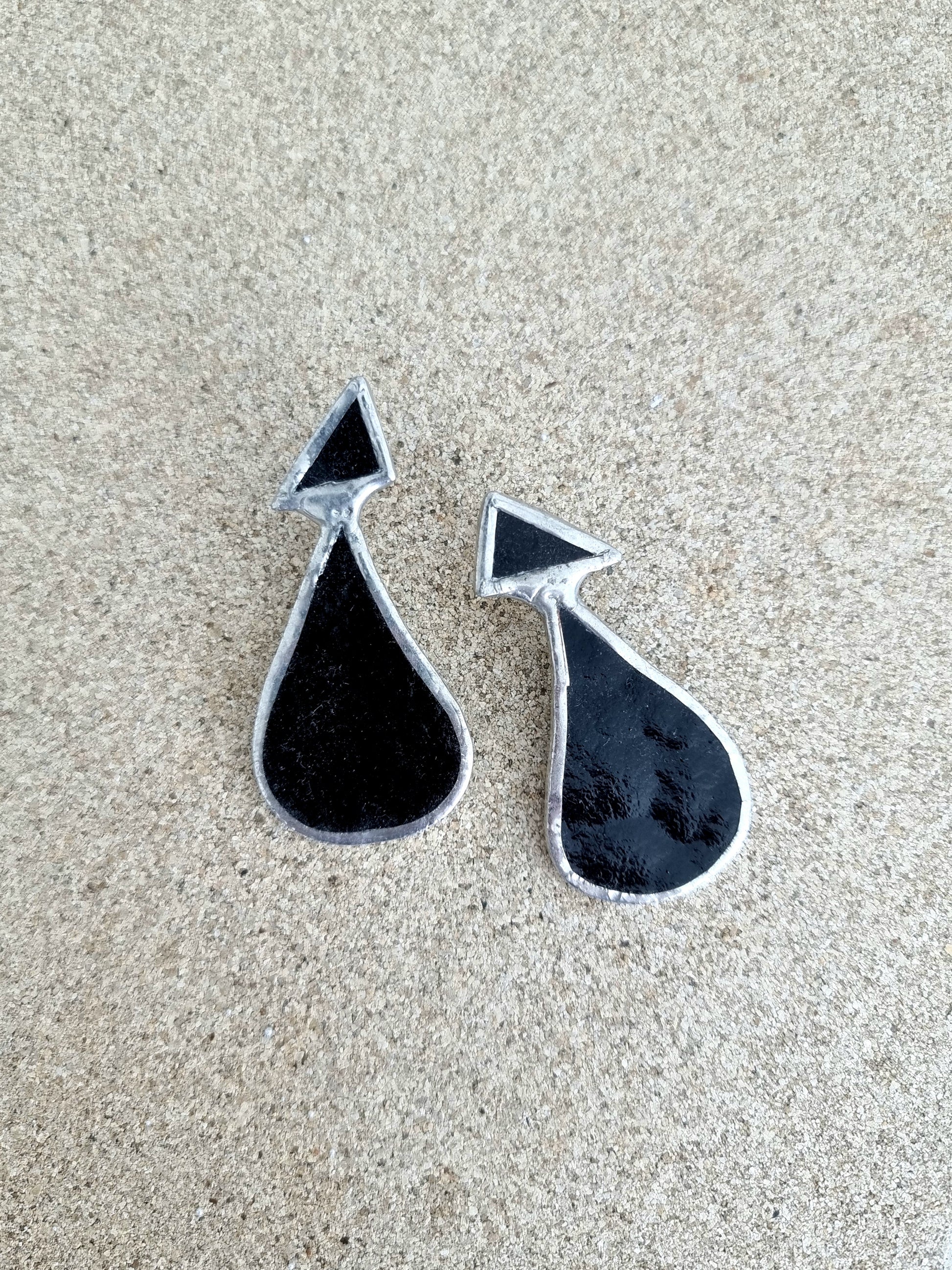 Glass is covered in lead-free solder with nickel free metal earring posts and butterfly backing