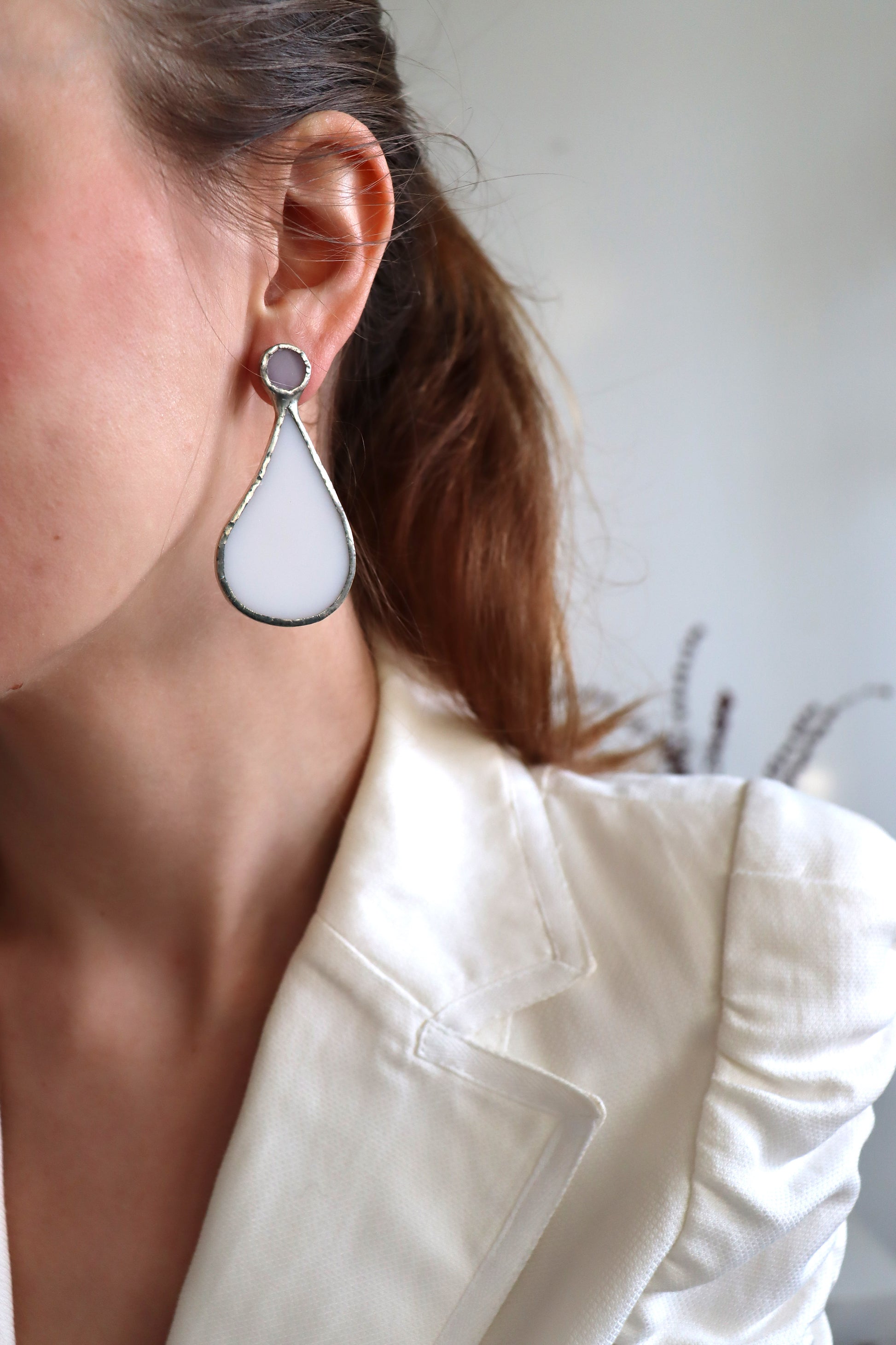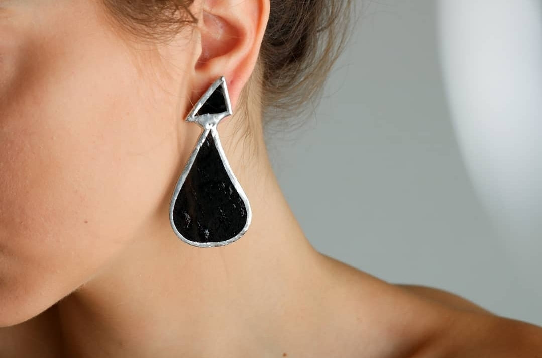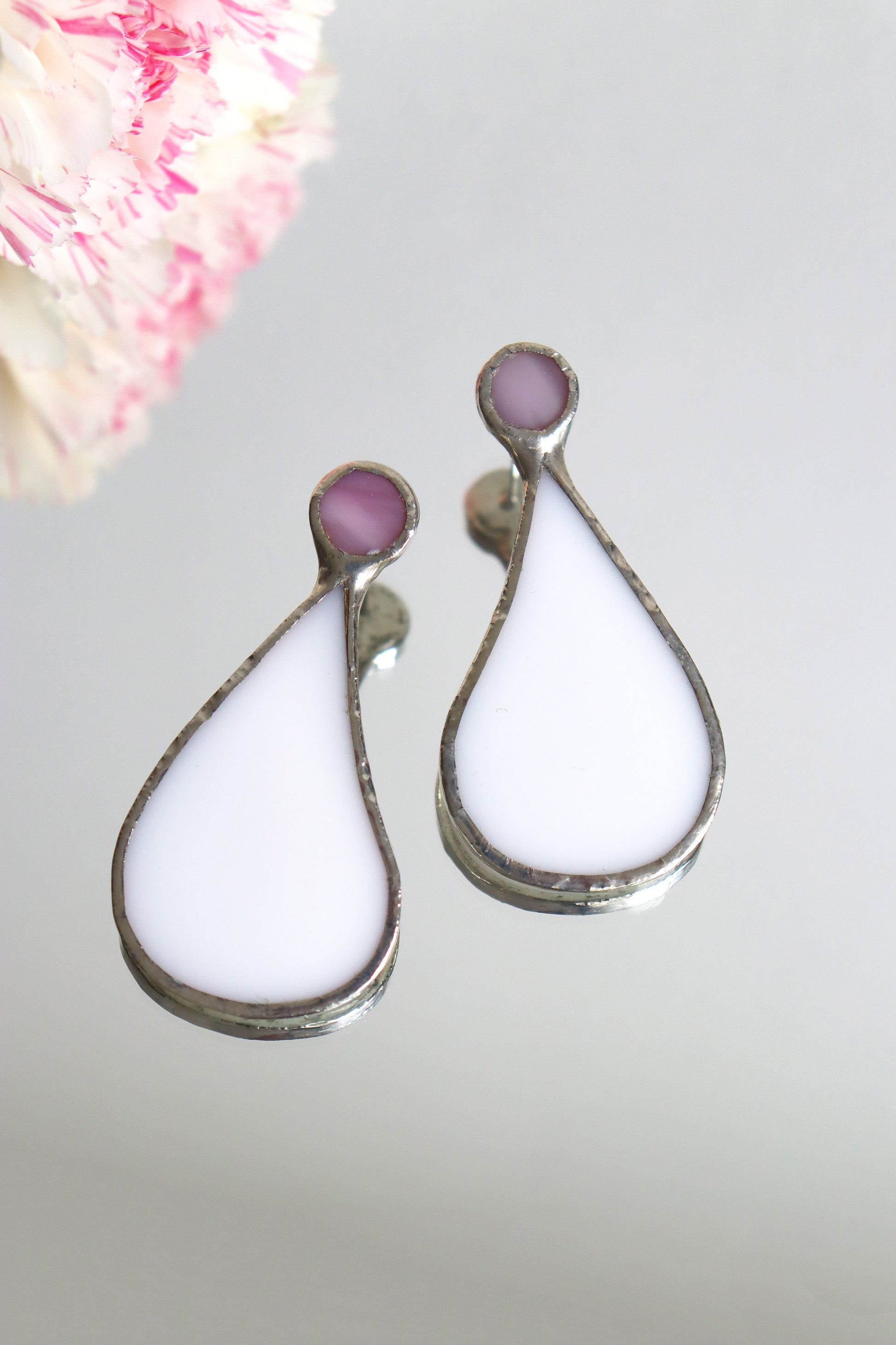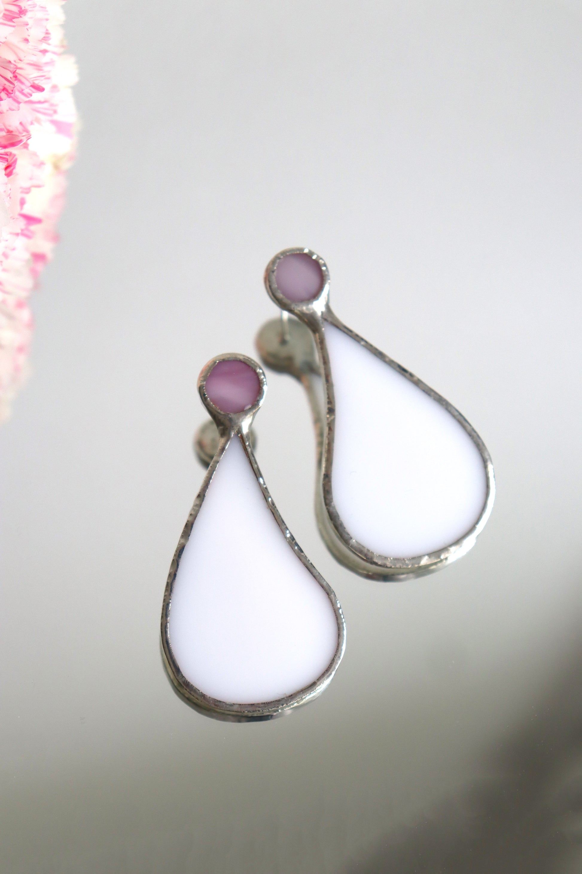 Glass is covered in lead-free solder with nickel free metal earring posts and butterfly backing
