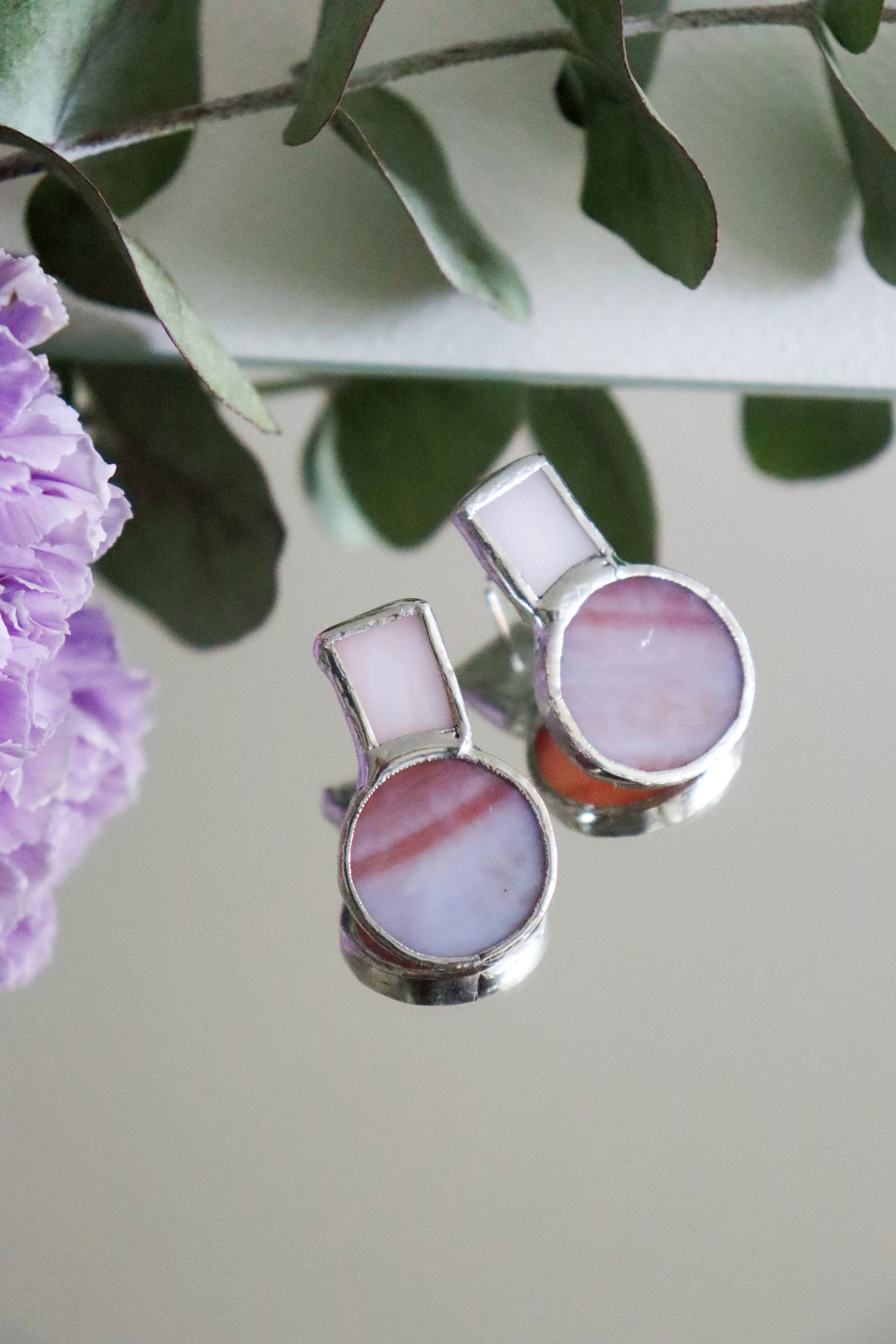 Material: Spectrum glass covered in lead-free solder with nickel free metal earring post and stainless steel earring back