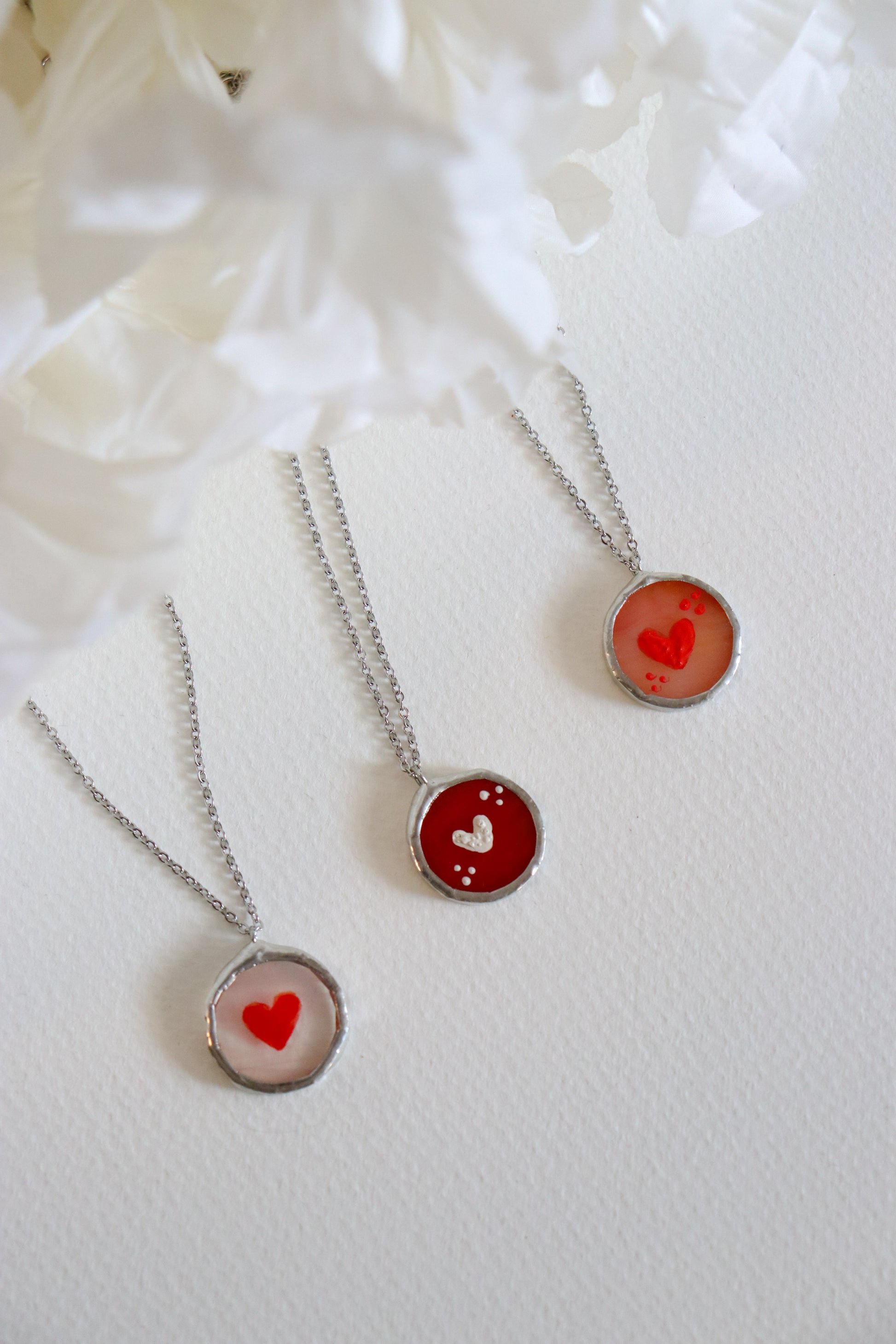 Elegant necklaces handcrafted from quality glass and hand painted with glass paint in a variety of colors.
