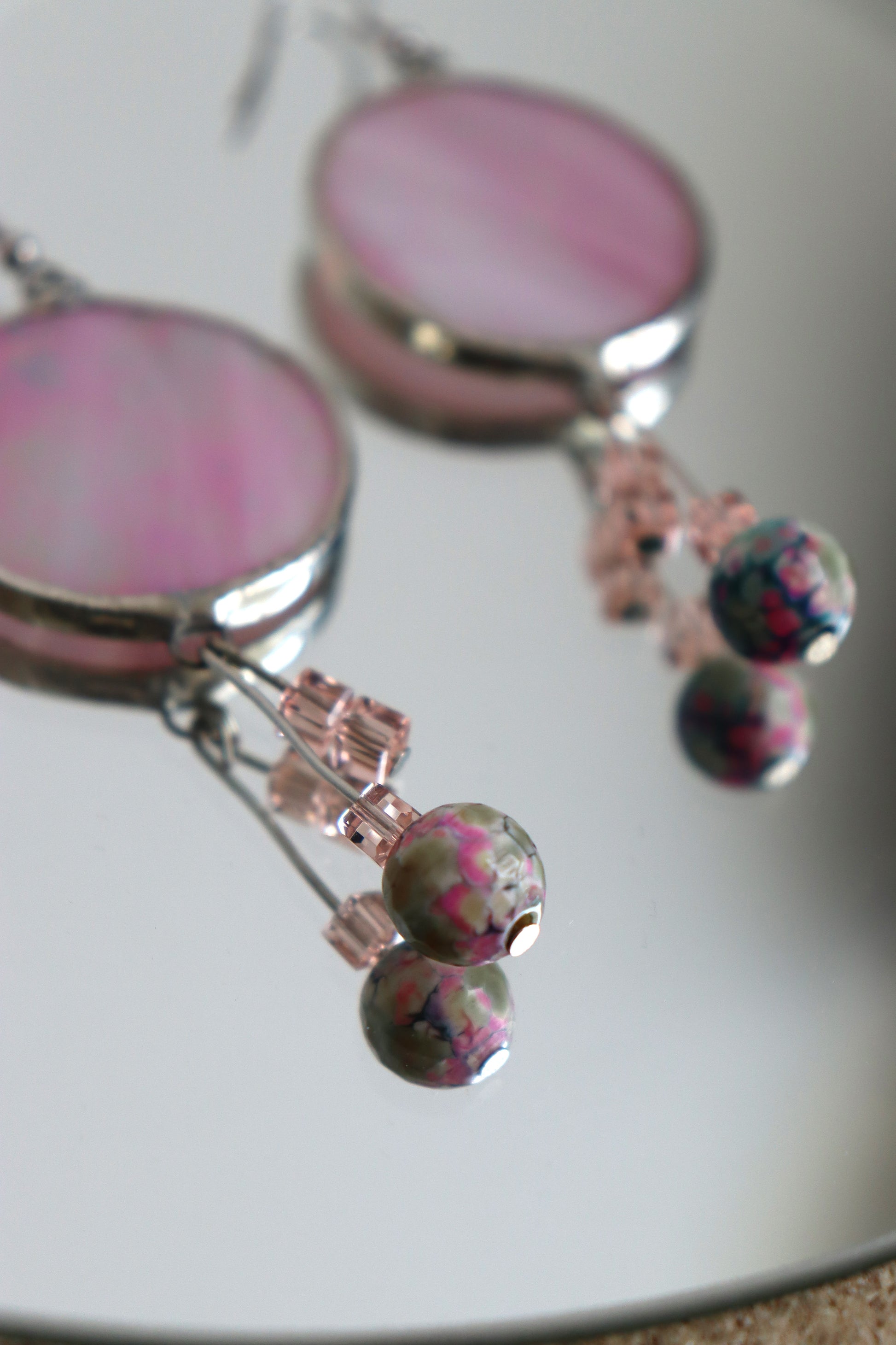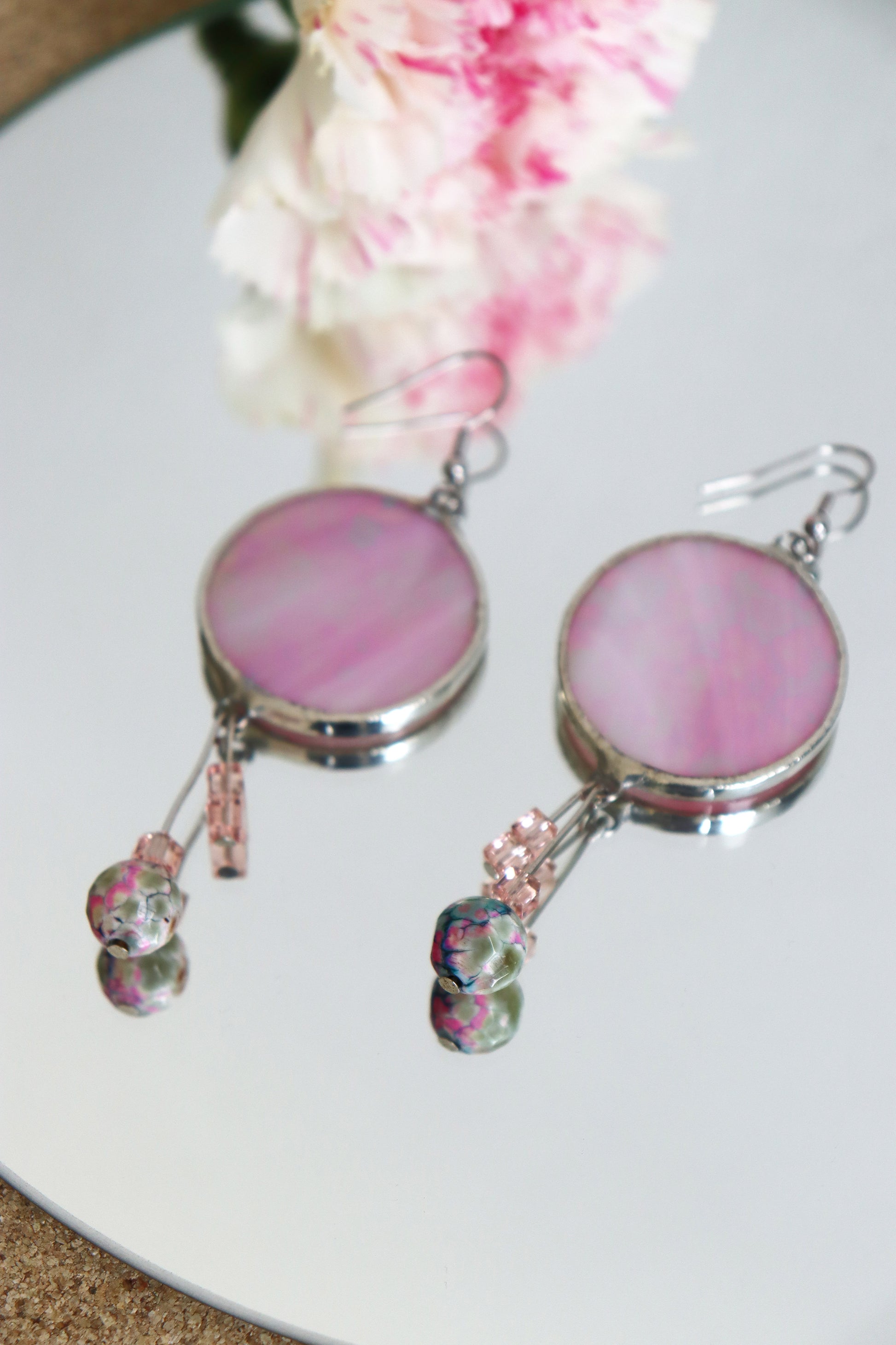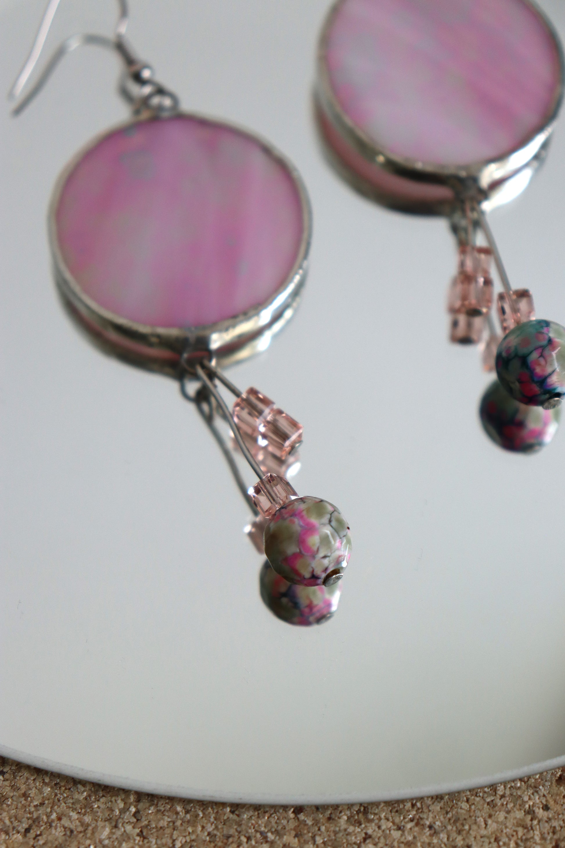 Glass is covered in lead-free solder with stainless steal ear wire hooks