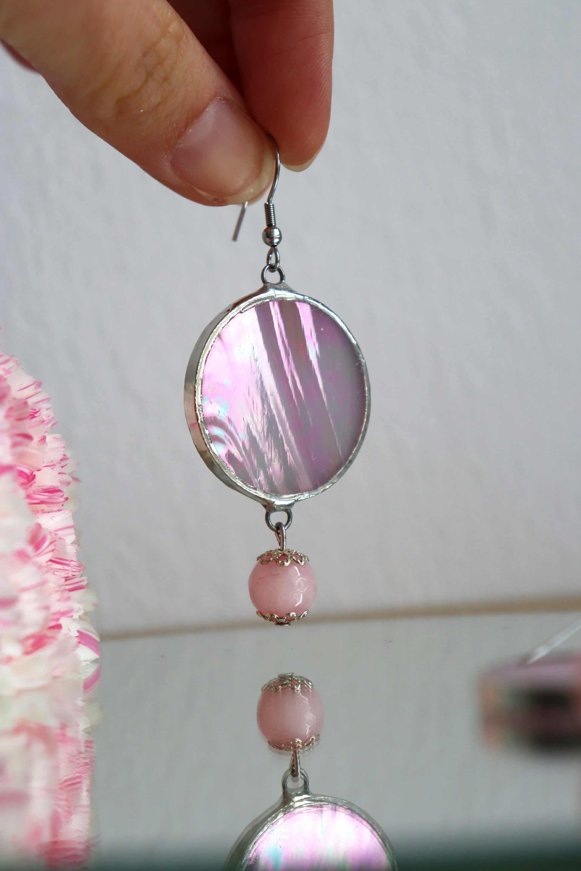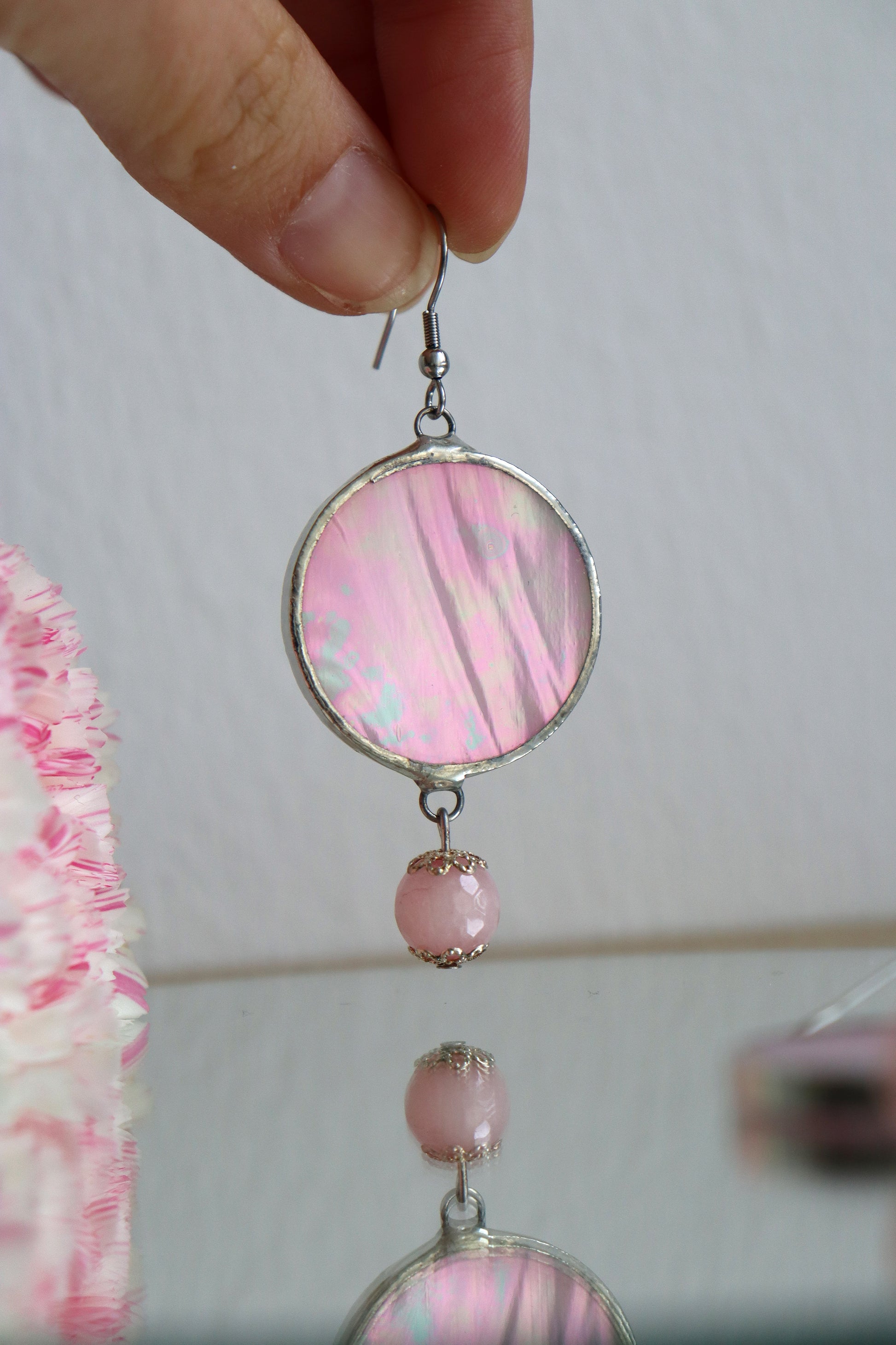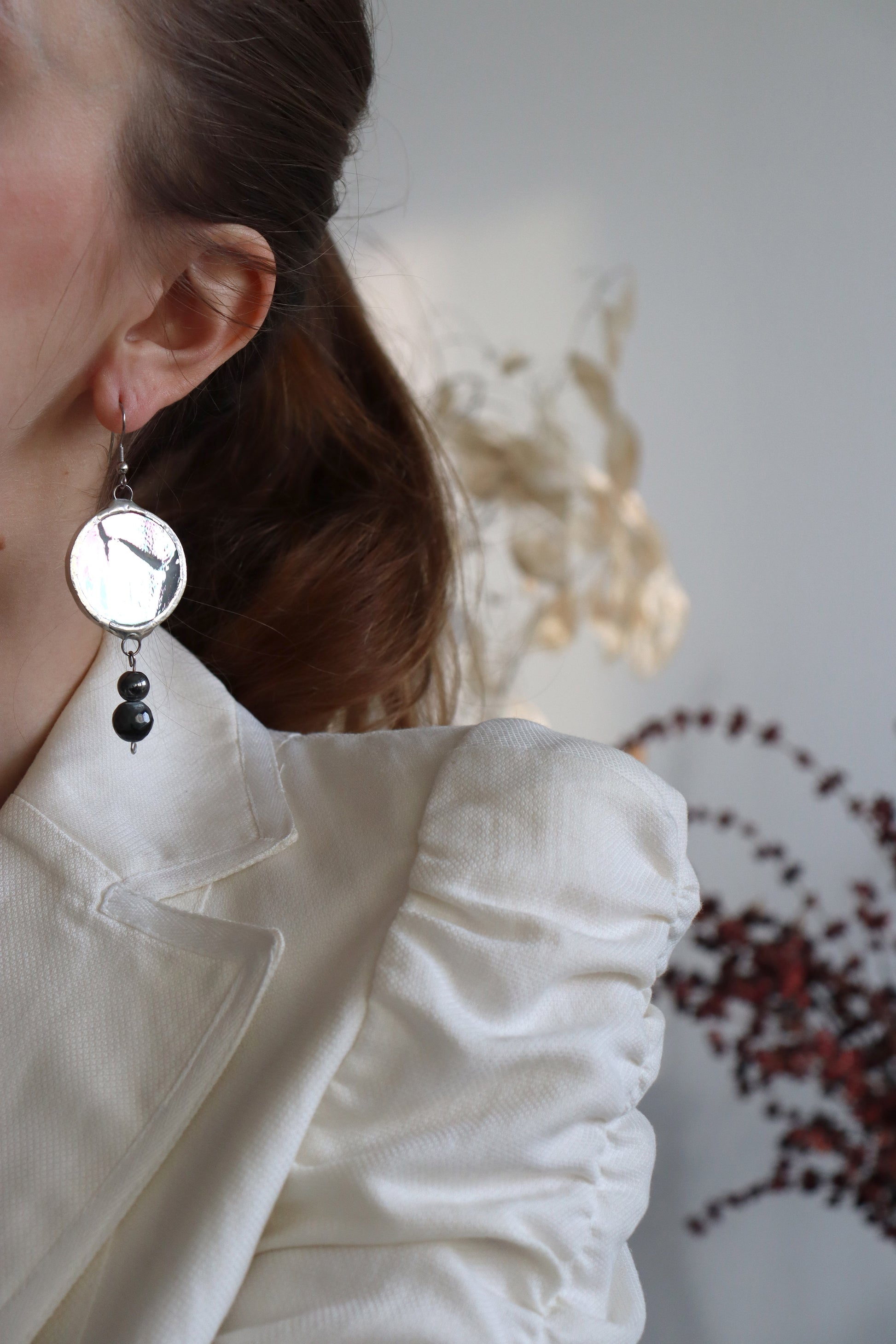 Style I: glass diameter: 3 cm, Earrings length: 8.5 cm, Weight of one earrings: 9.46 g