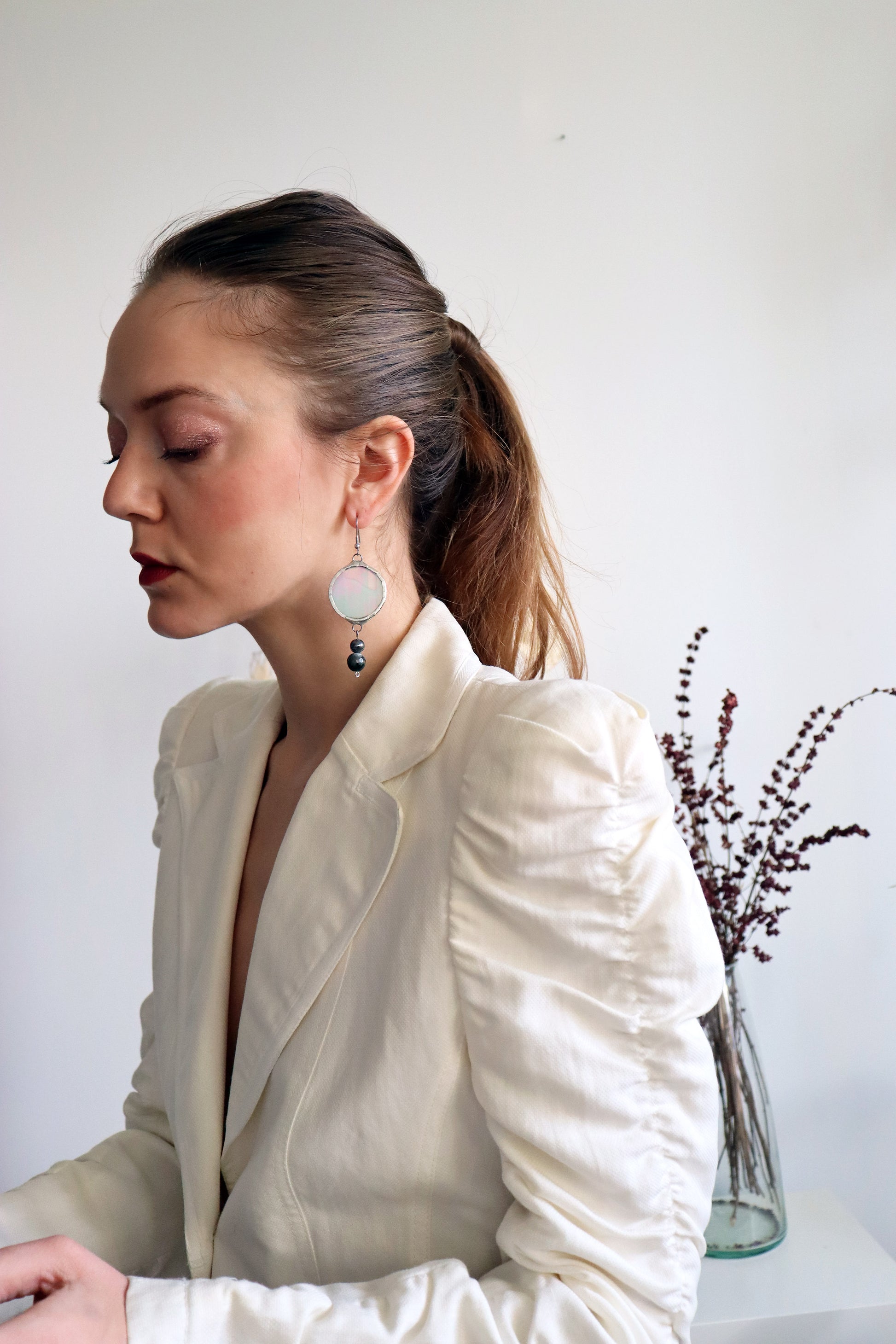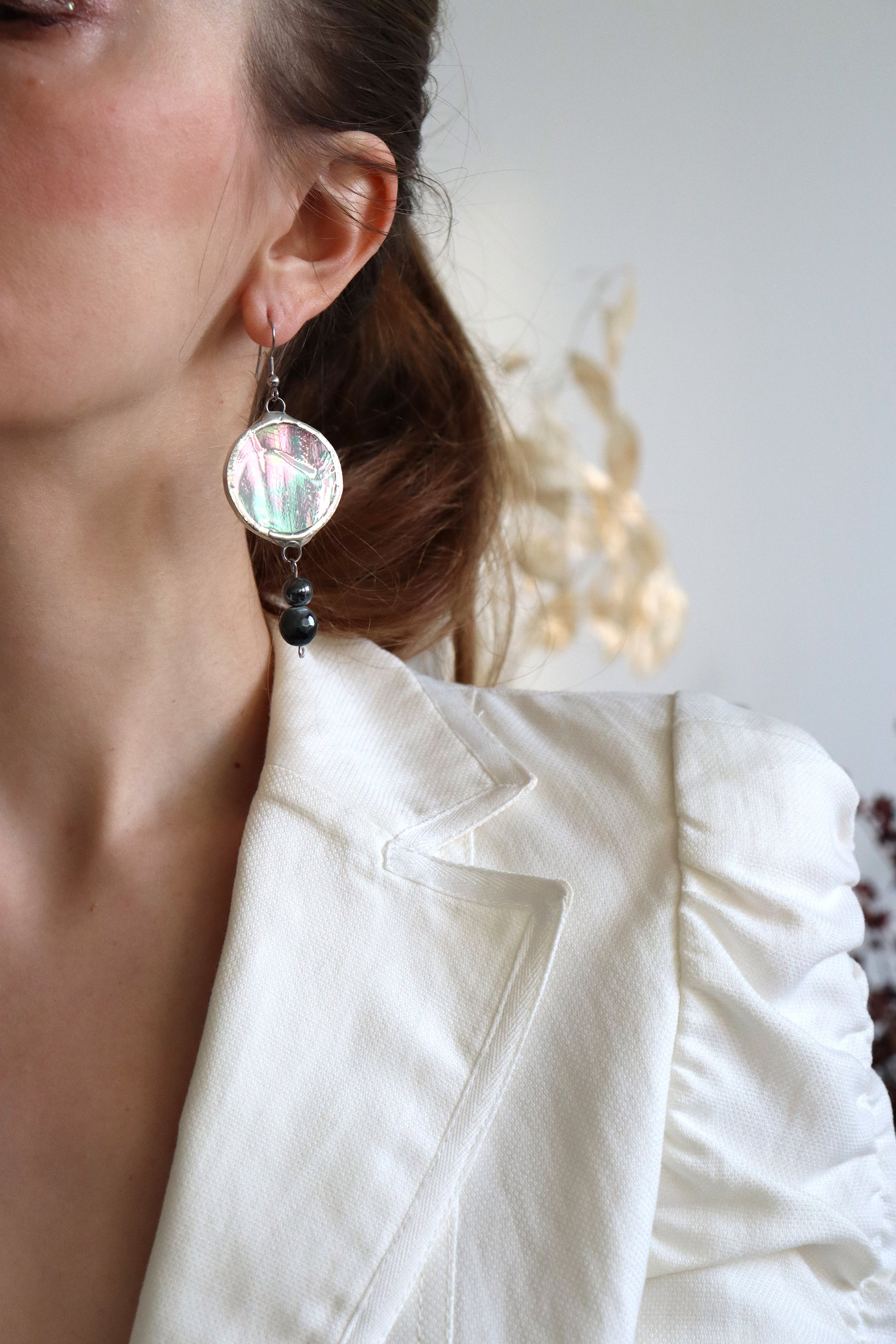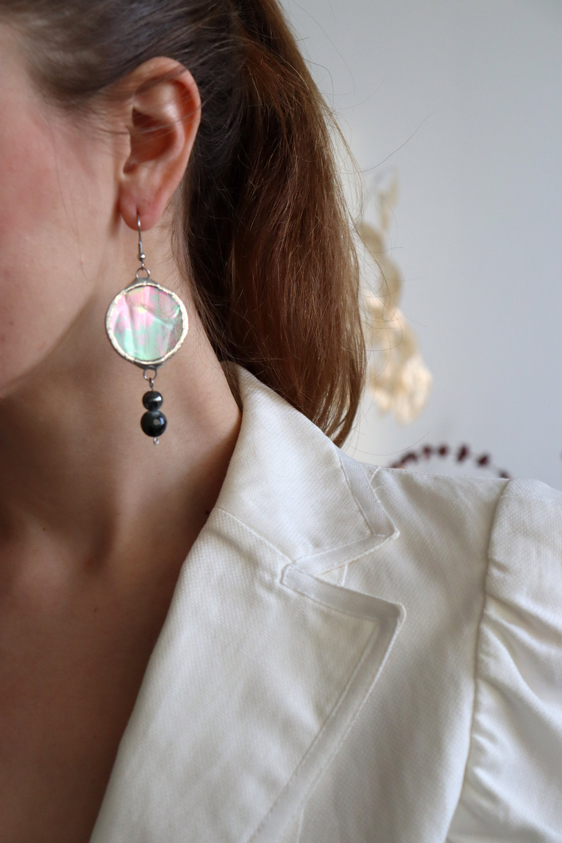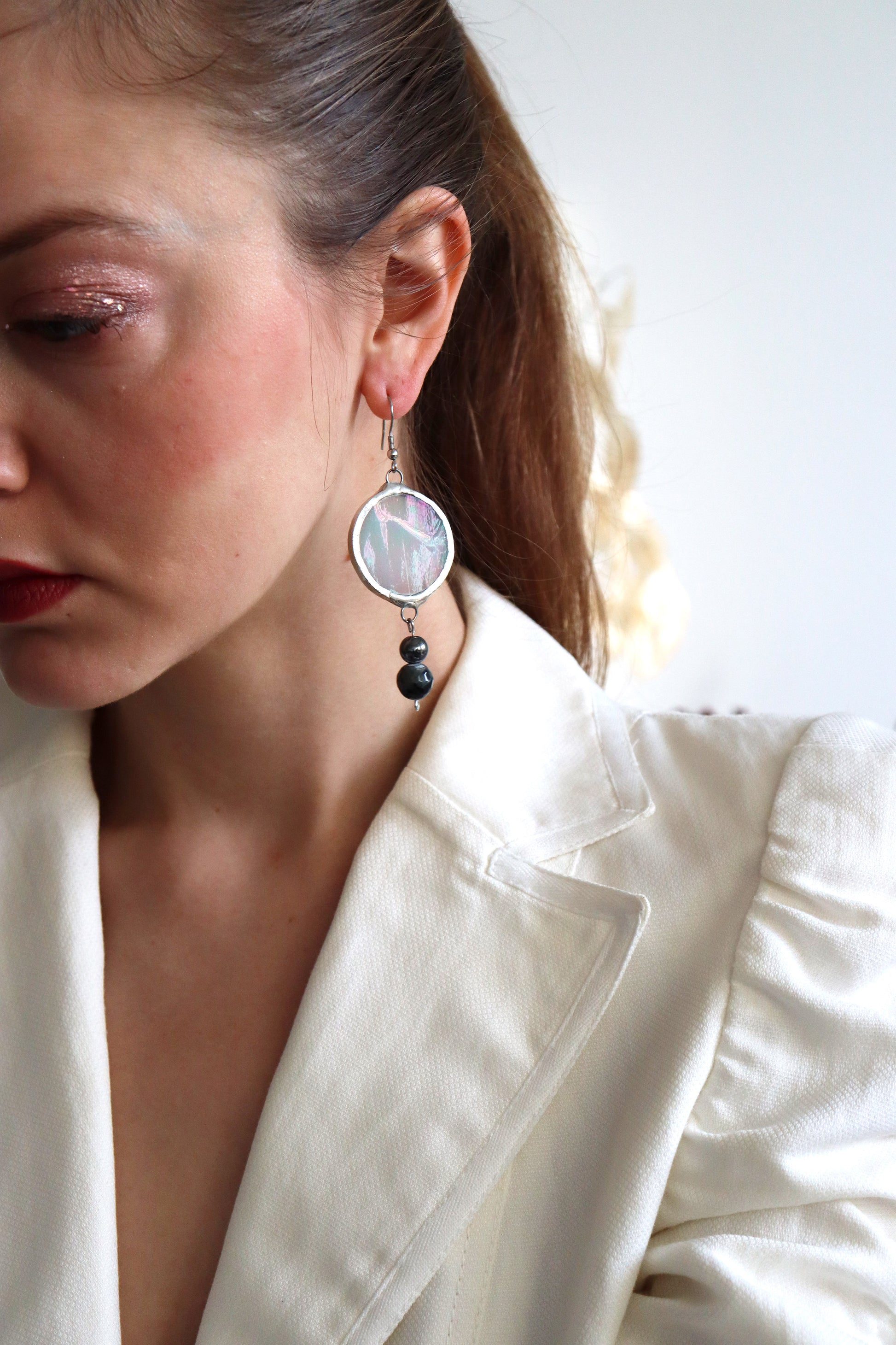 Style I: glass diameter: 3 cm, Earrings length: 8.5 cm, Weight of one earrings: 9.46 g