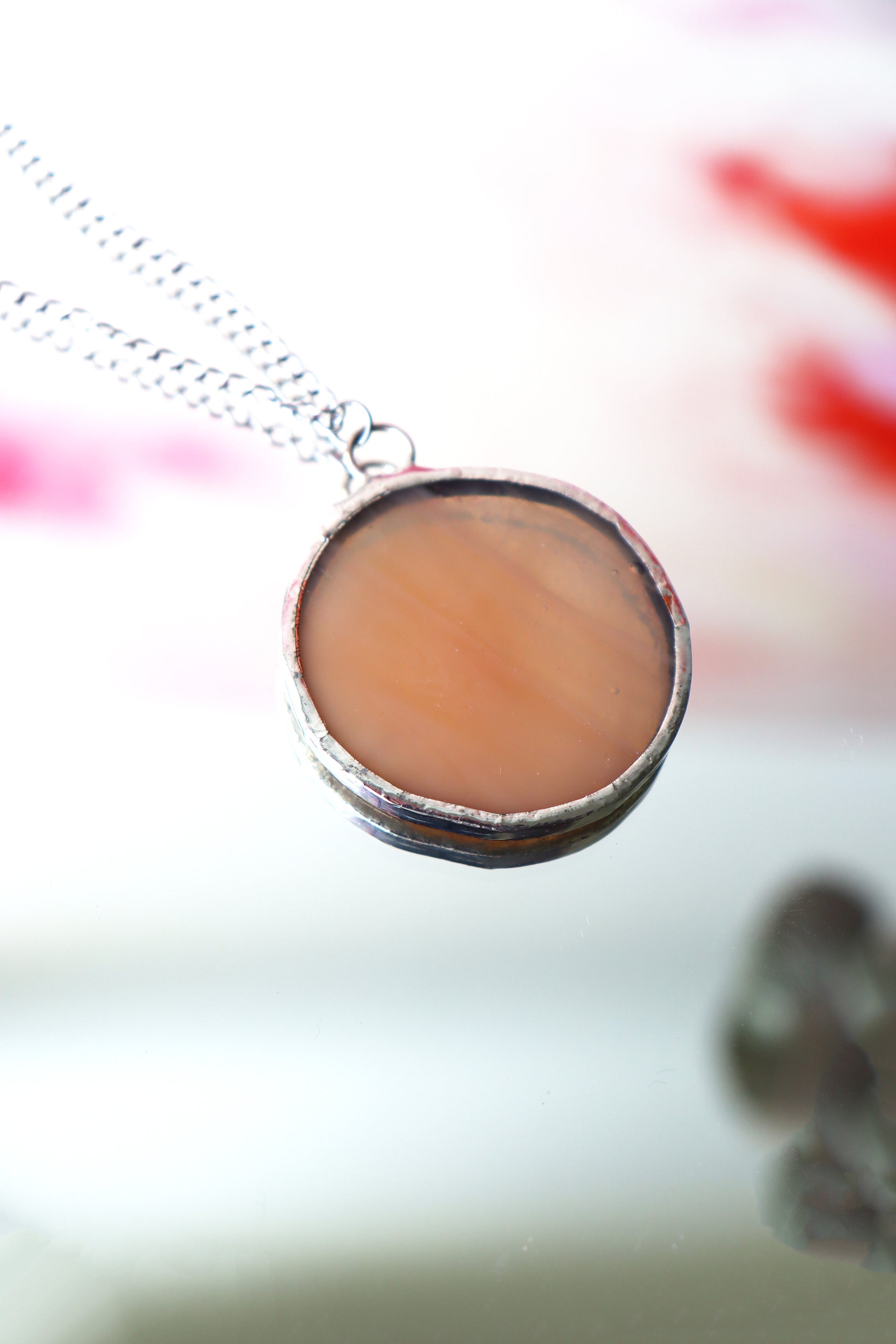 Glass is covered in lead-free solder with stainless steel chain