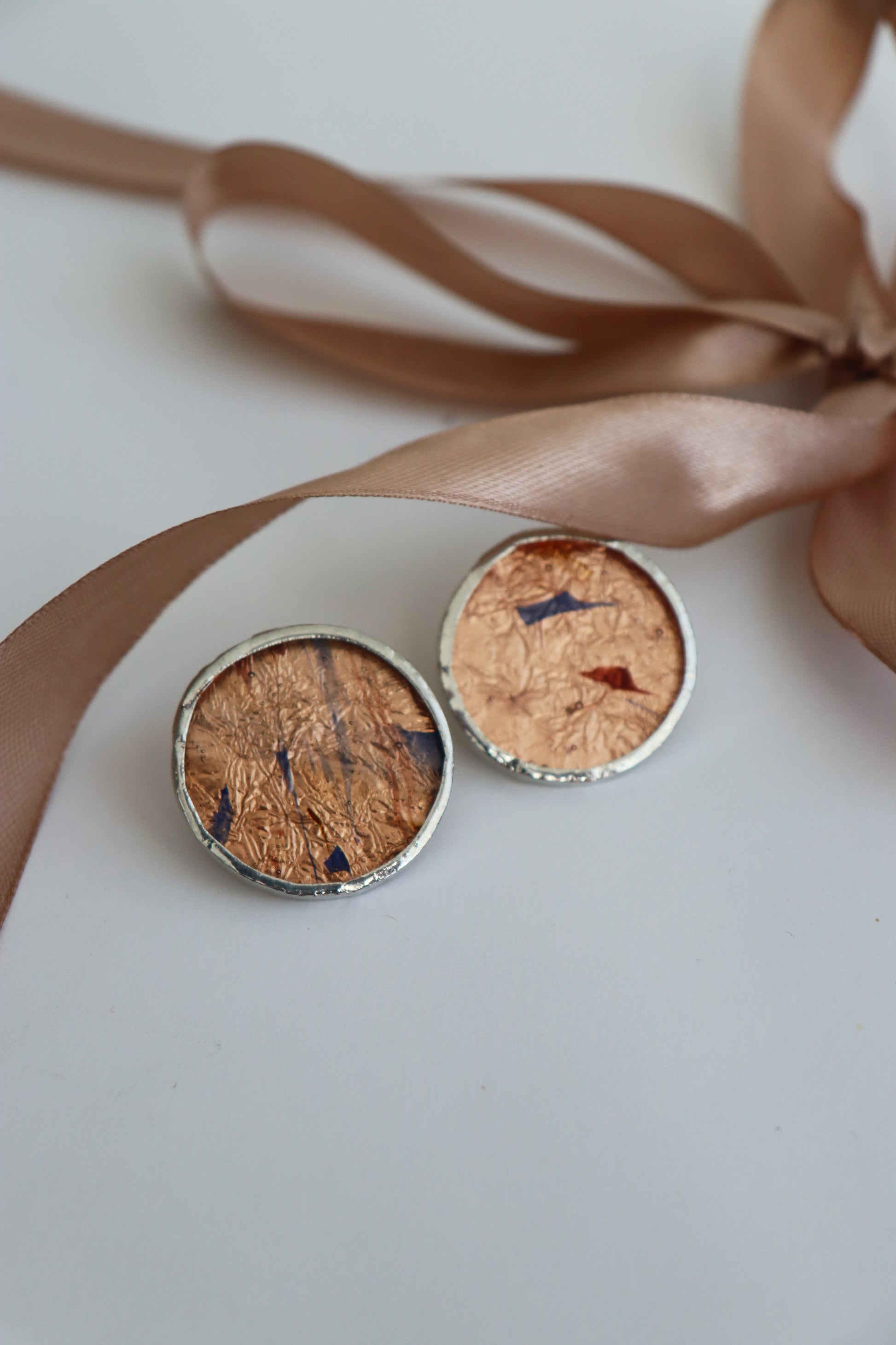 Glass is covered in lead-free solder with nickel free metal earring posts and butterfly backing