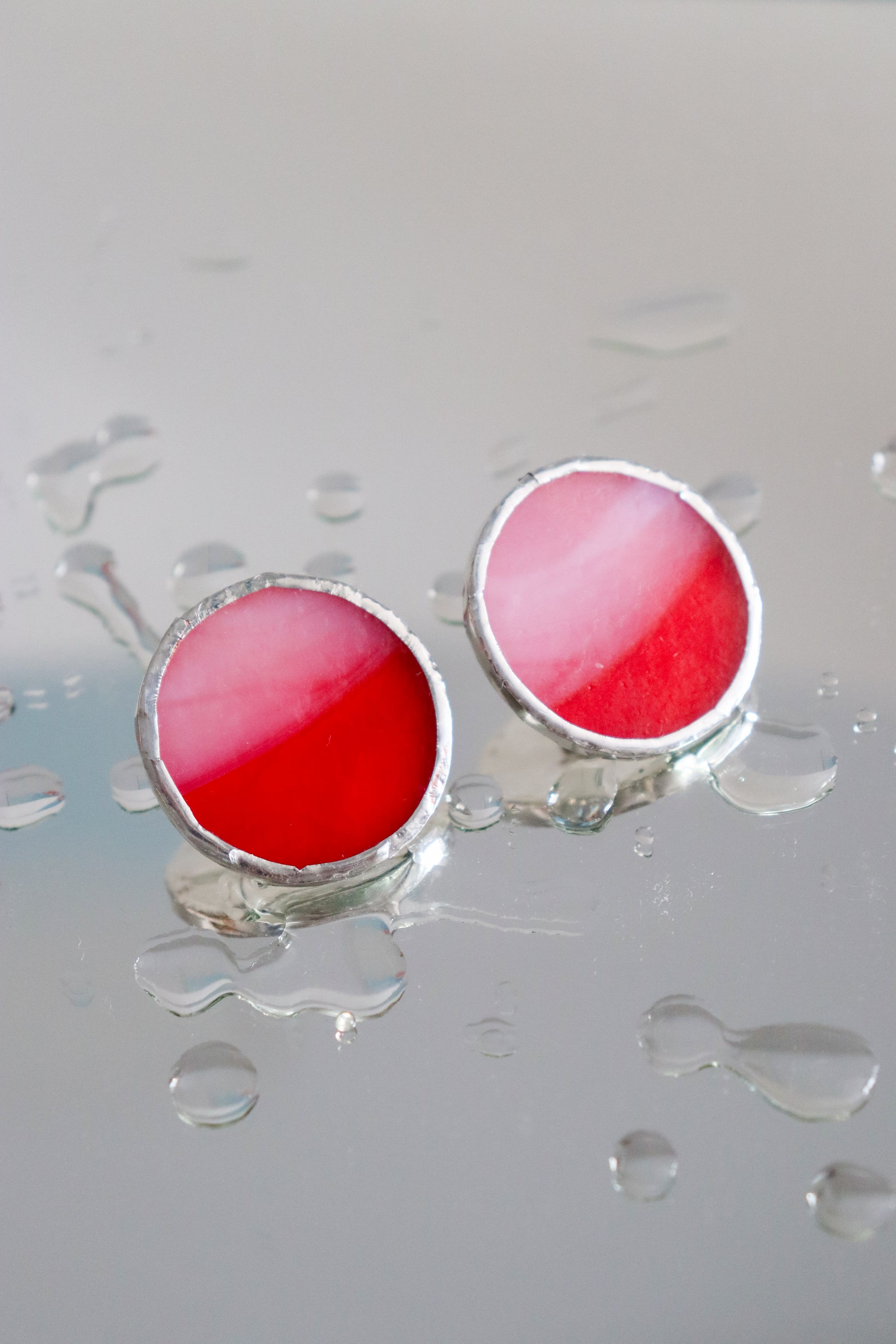 Medium circle earrings / Red and pink