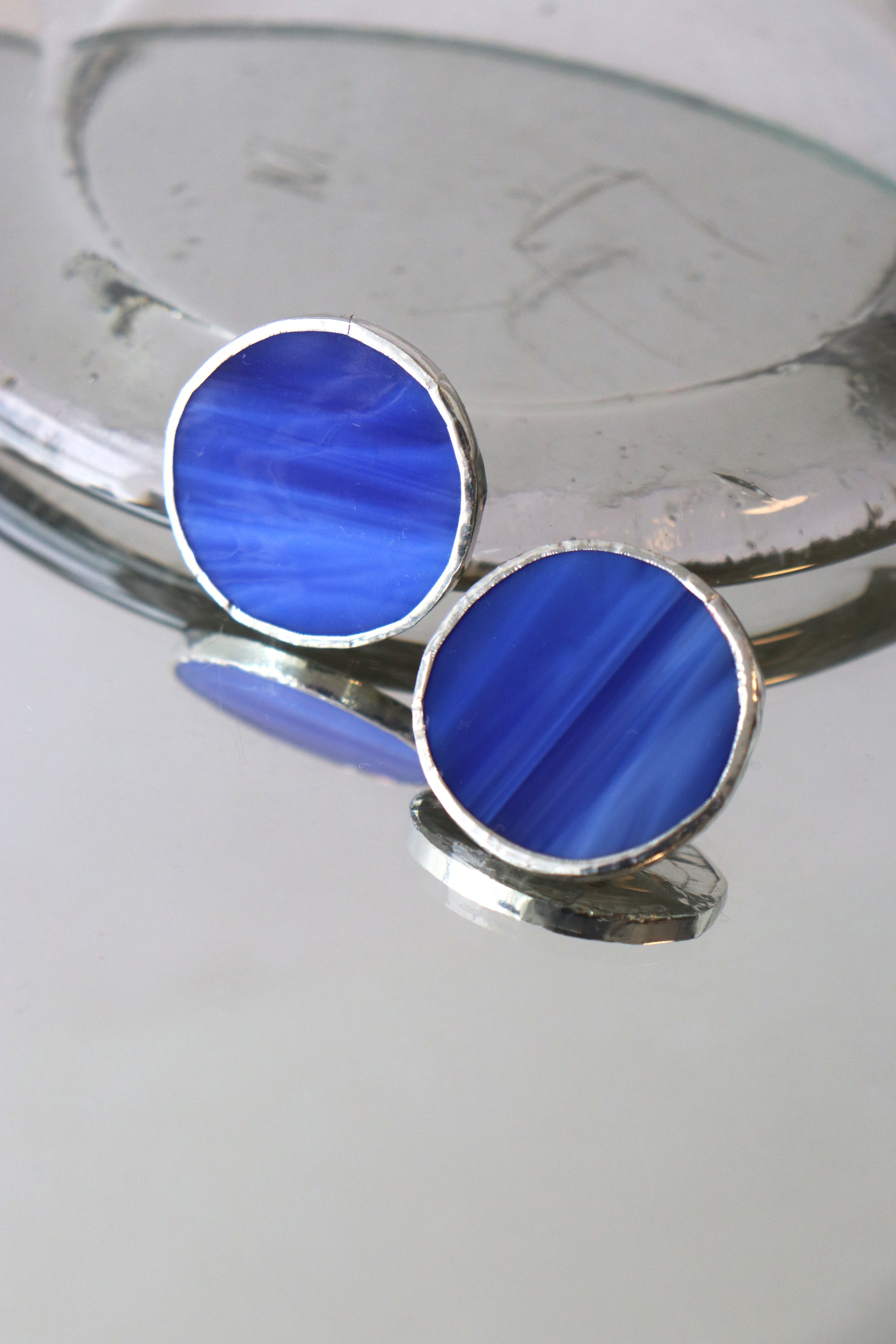 Glass is covered in lead-free solder with nickel free metal earring posts and butterfly backing