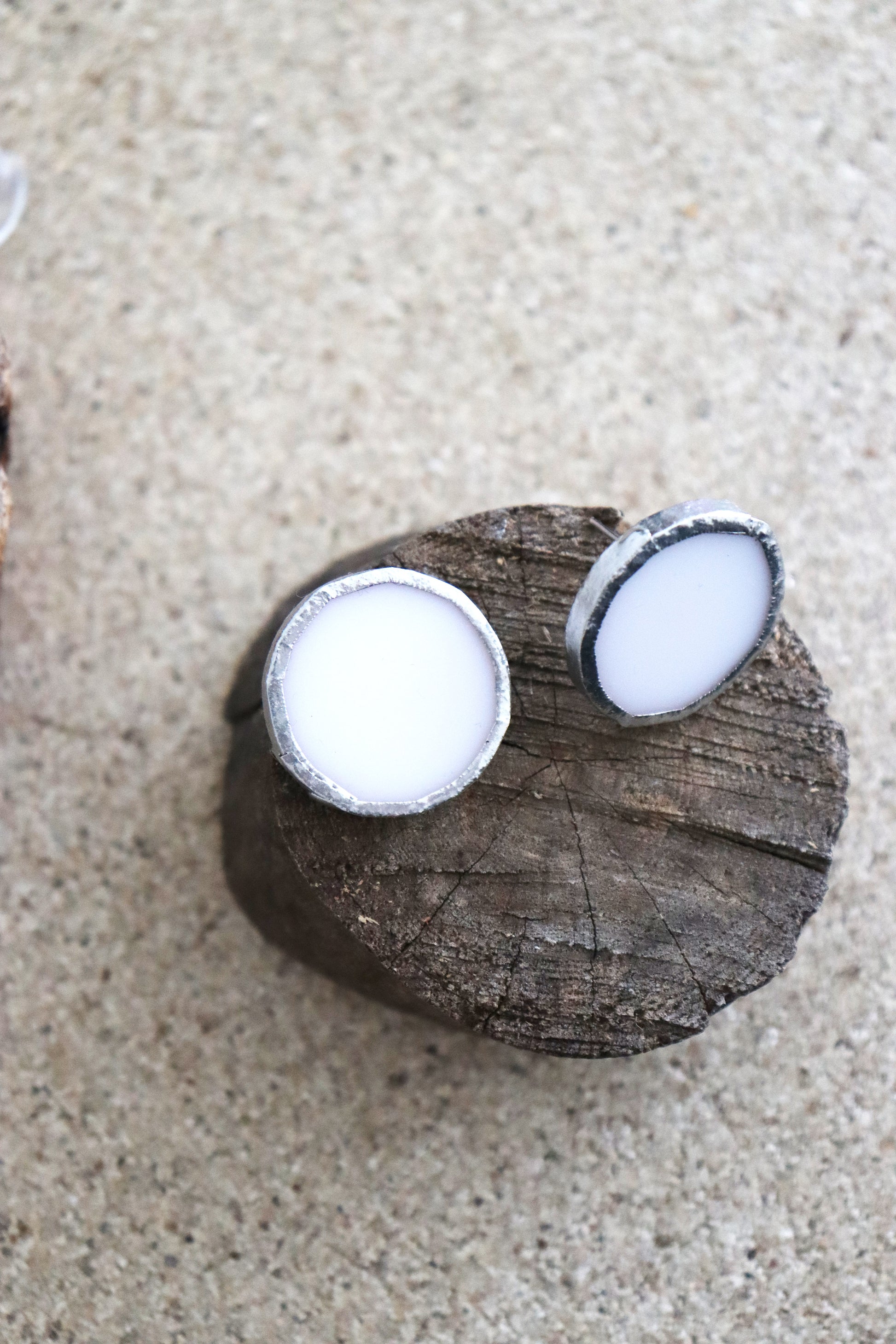 Glass is covered in lead-free solder with nickel free metal earring posts and butterfly backing