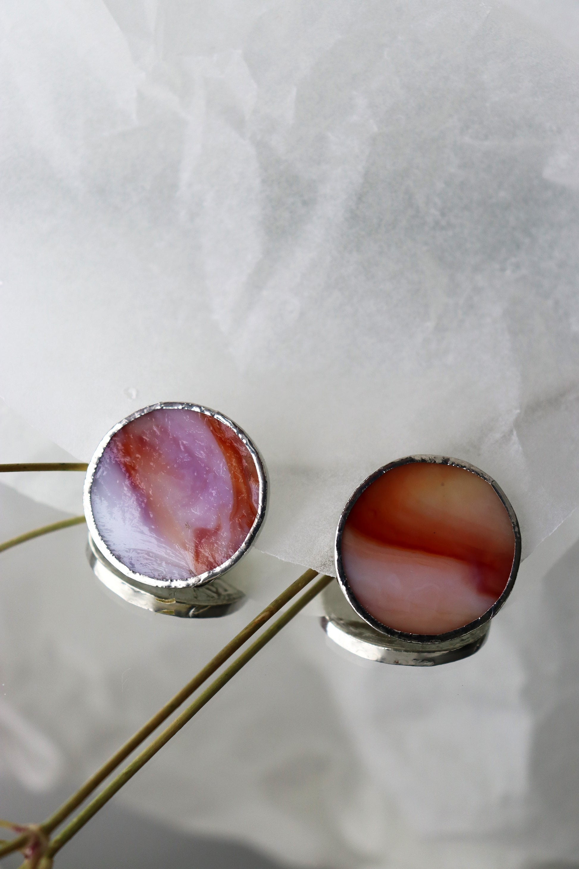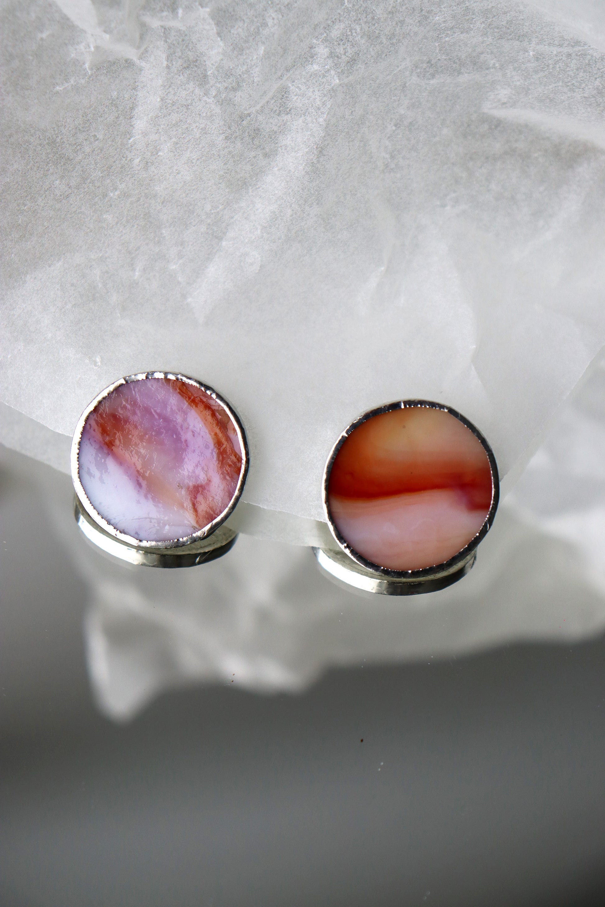 Glass is covered in lead-free solder with nickel free metal earring posts and butterfly backing