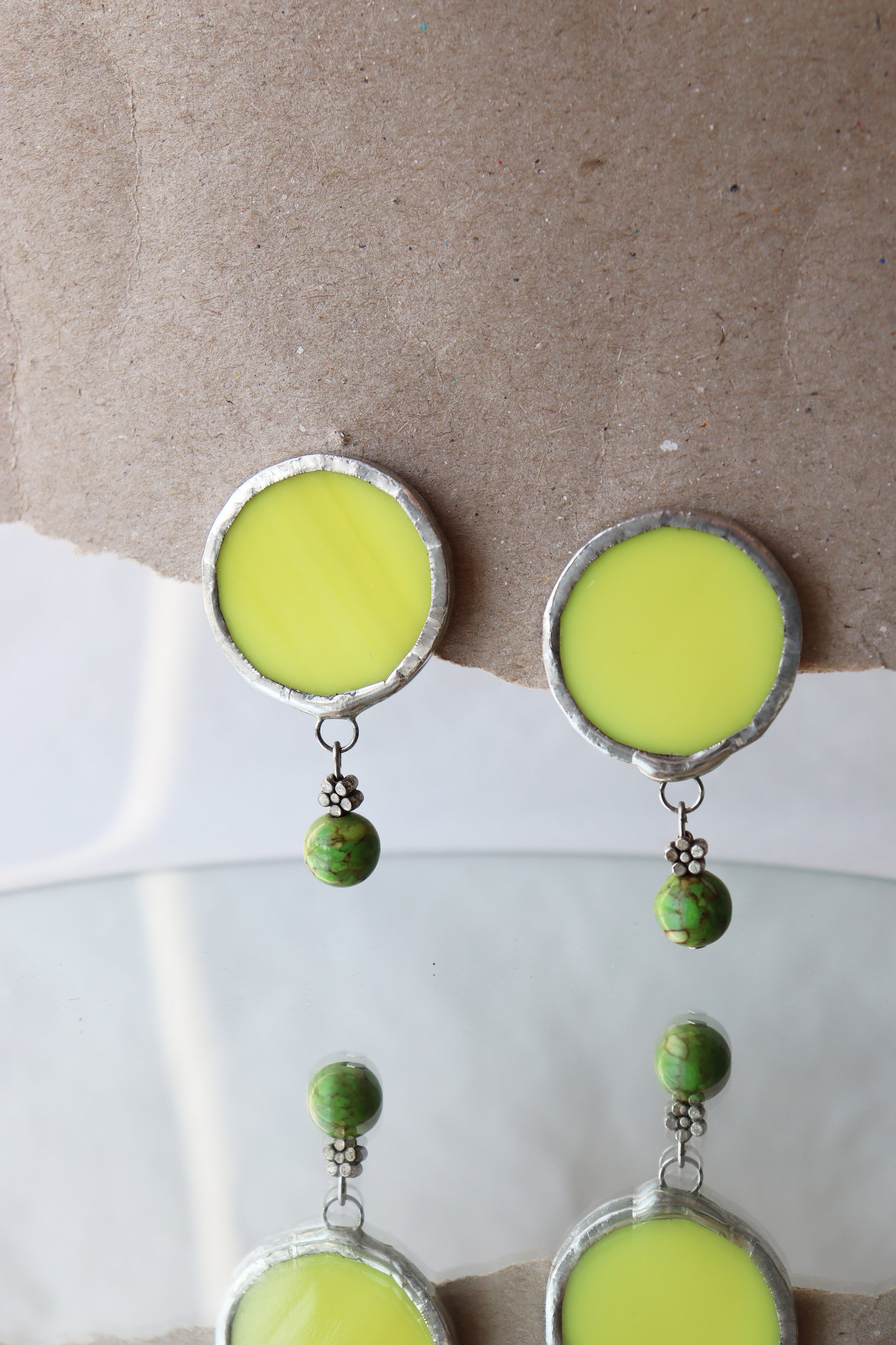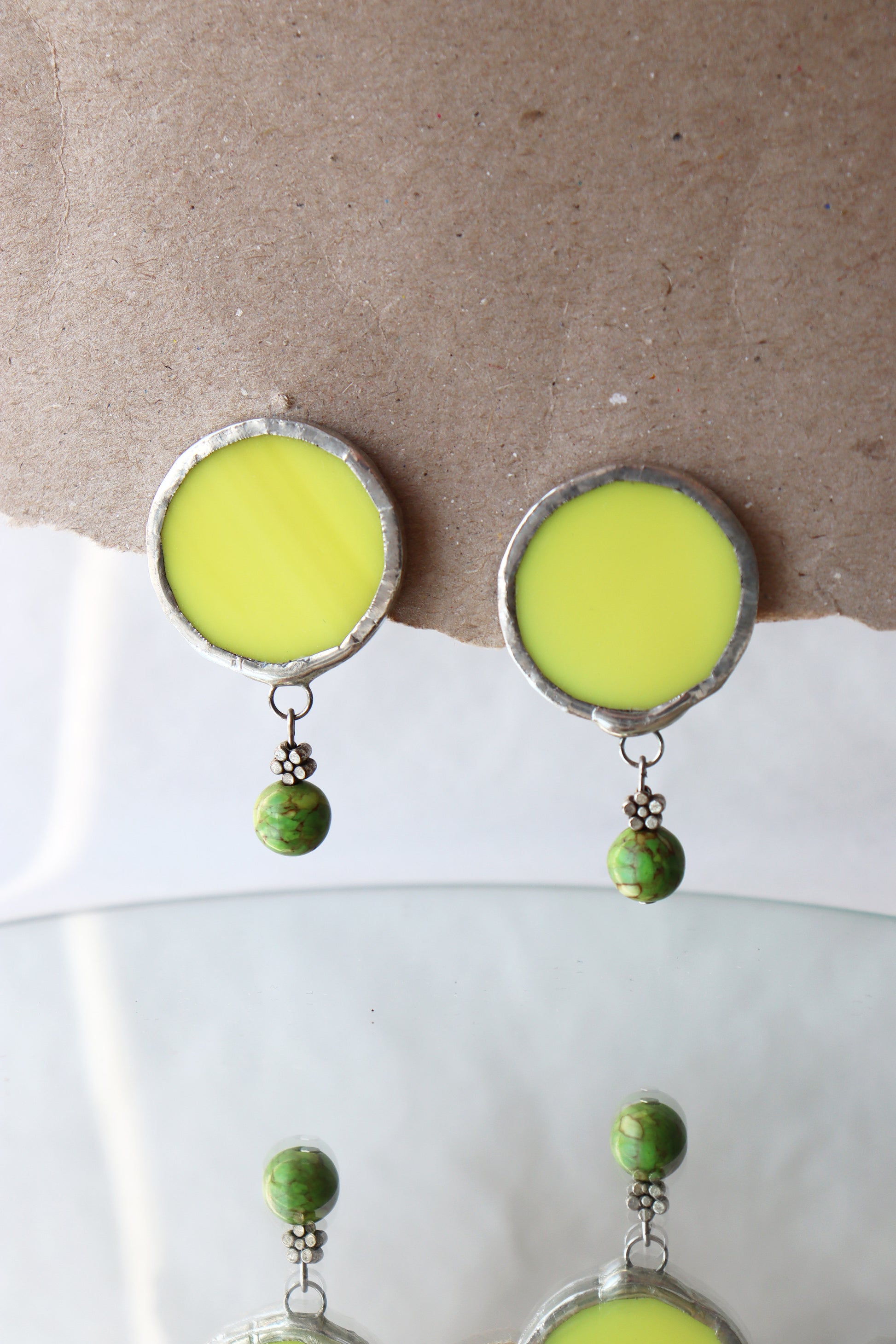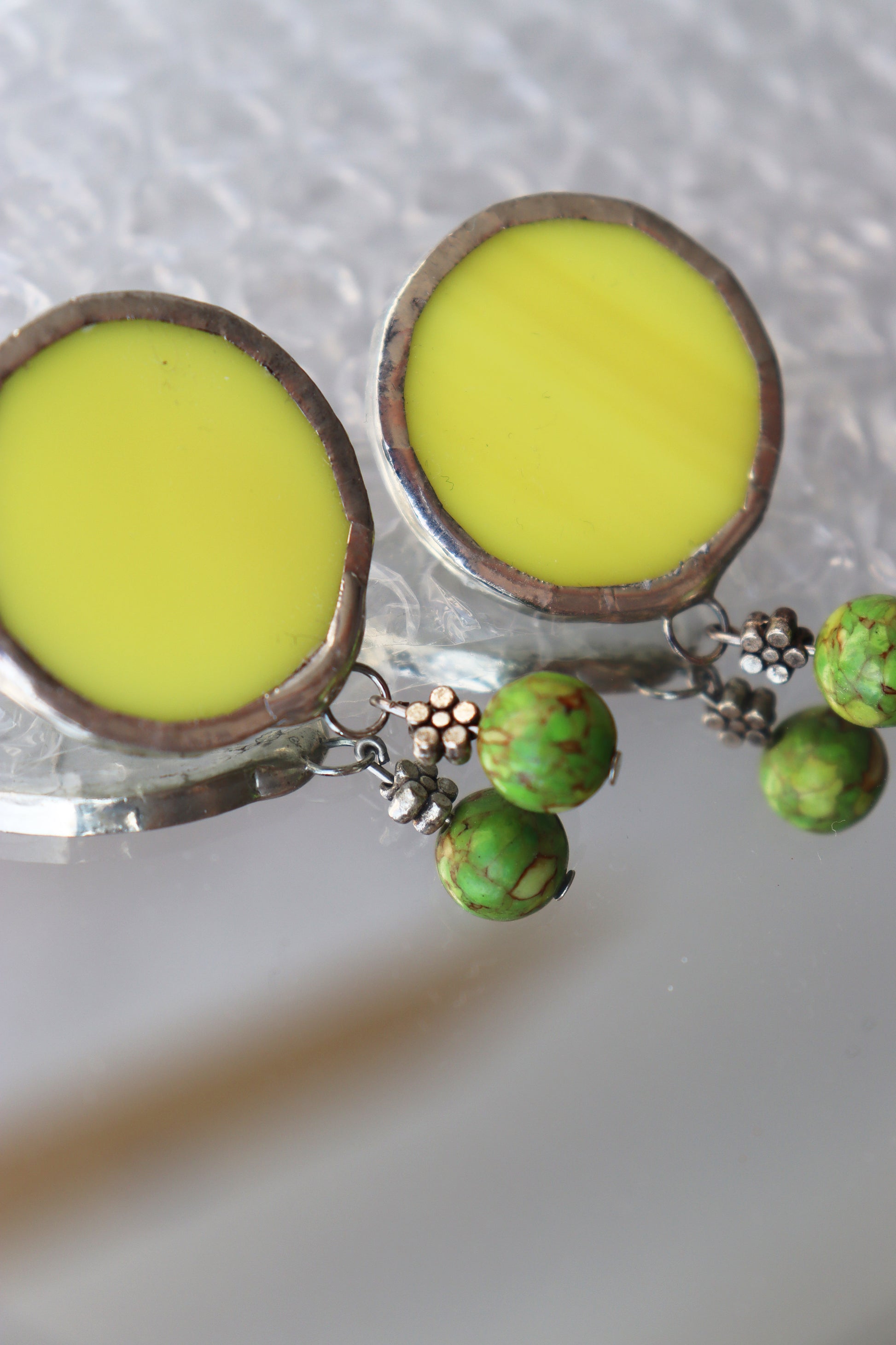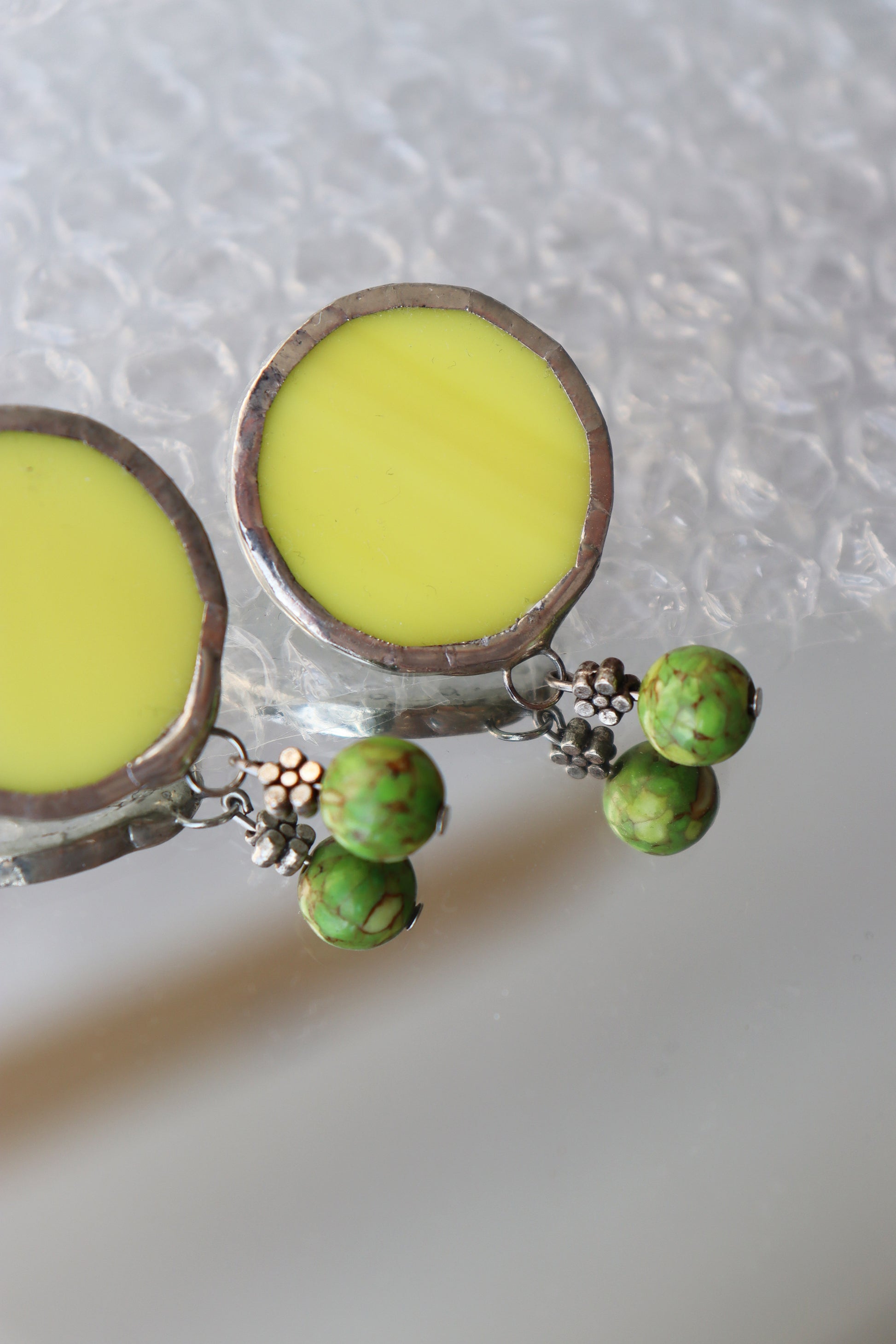 Glass is covered in lead-free solder with nickel free metal earring posts and butterfly backing