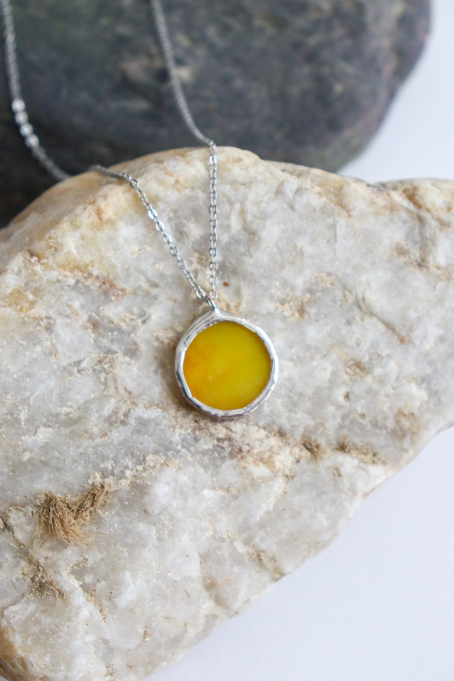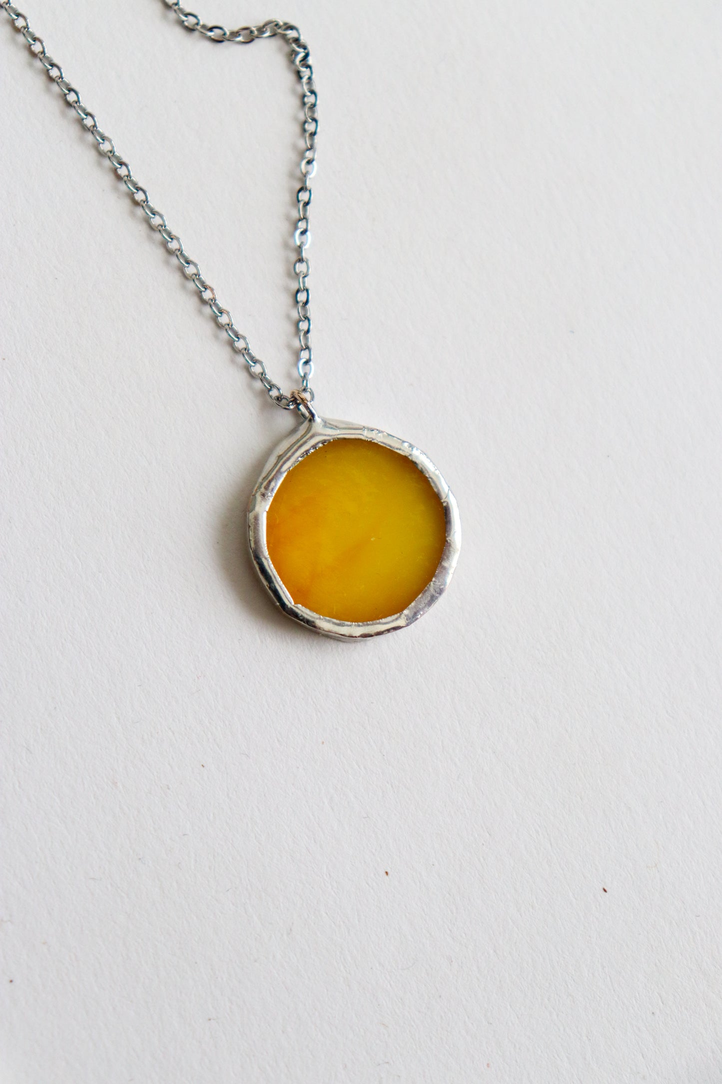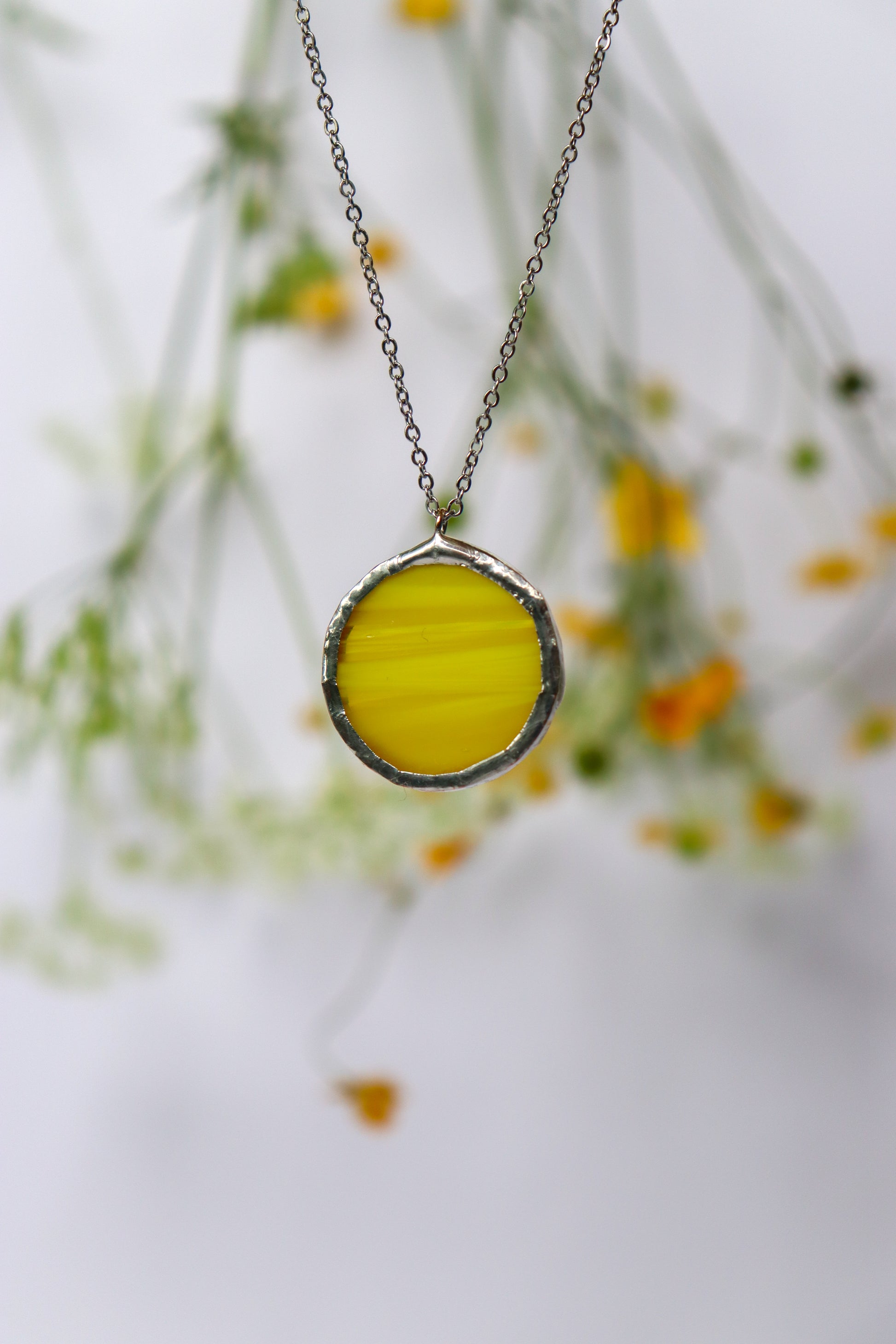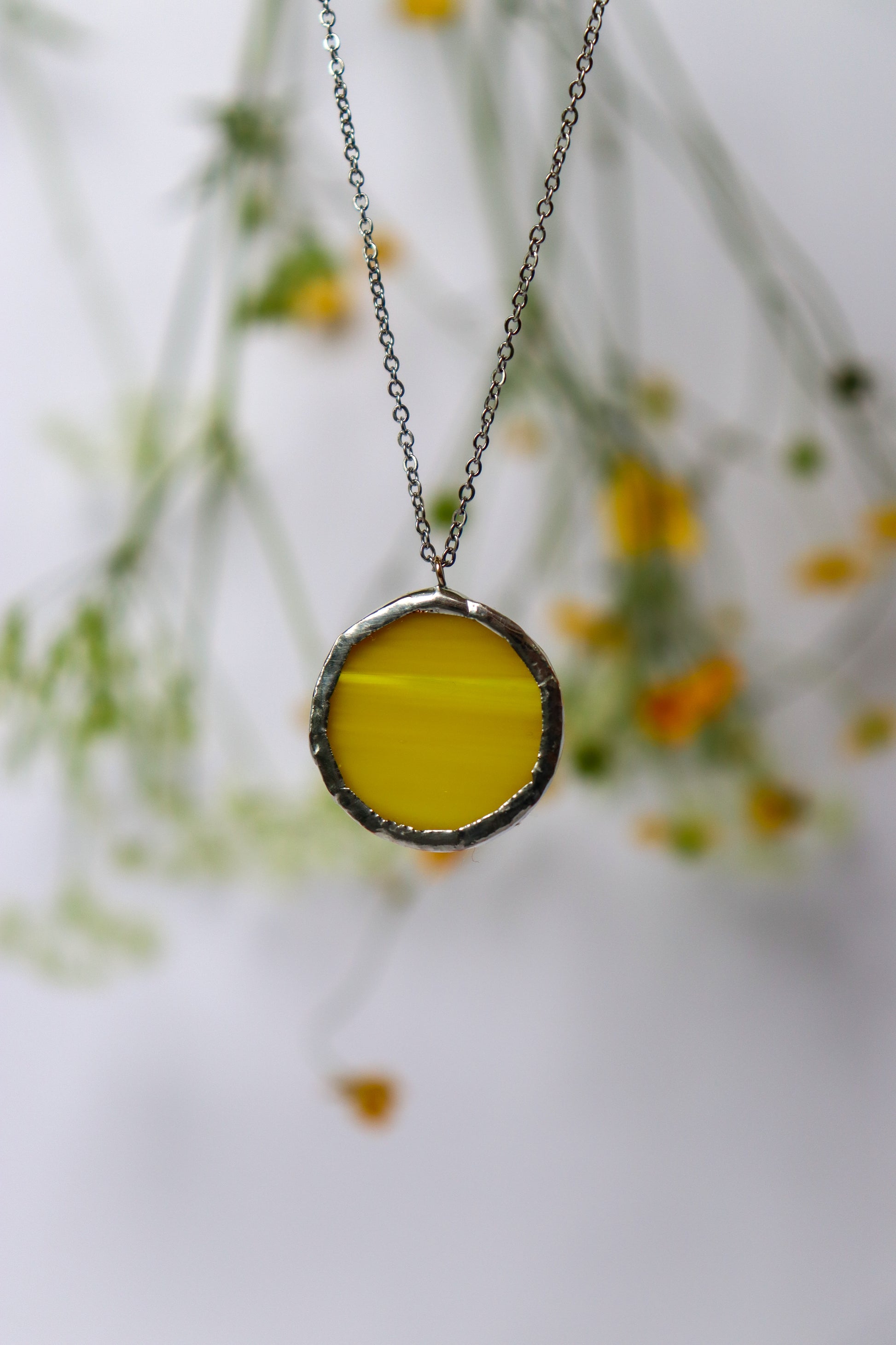 Glass is covered in lead-free solder with stainless steel chain