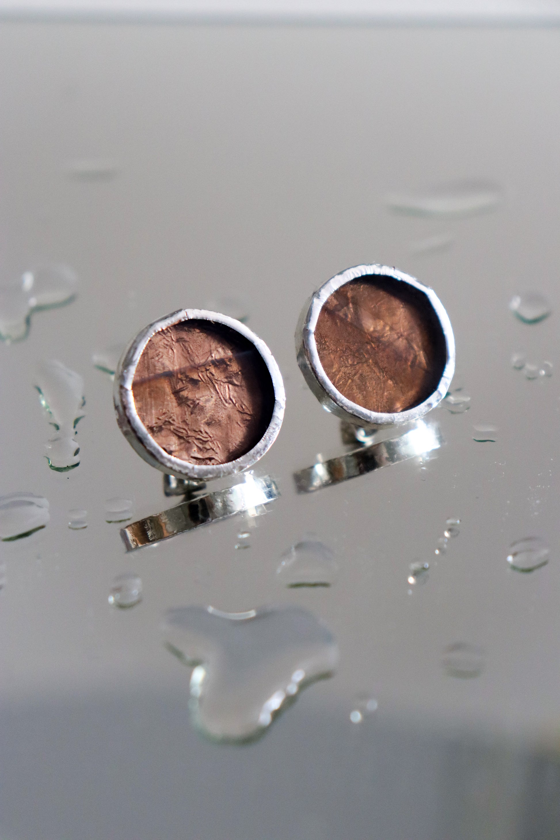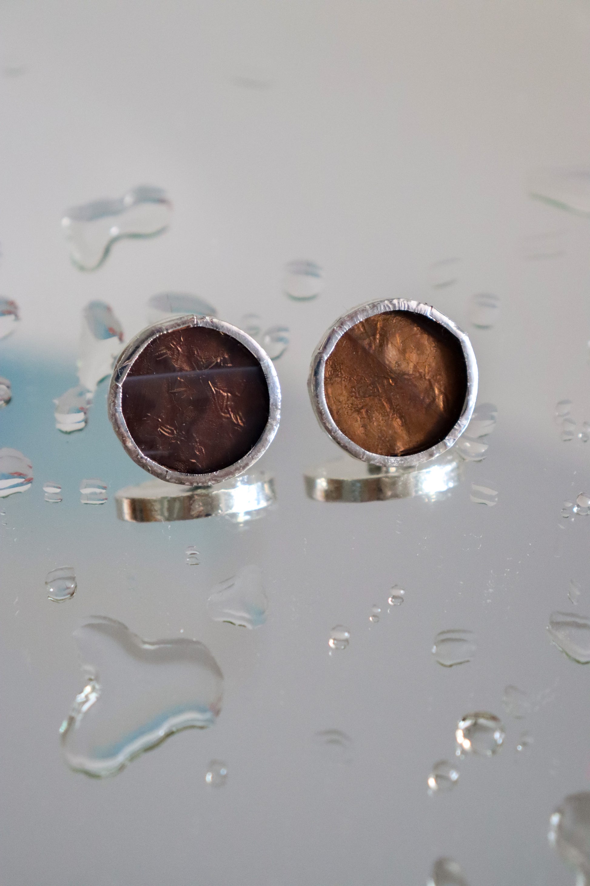 Material: Spectrum glass covered in lead-free solder with nickel free metal earring post and stainless steel earring back