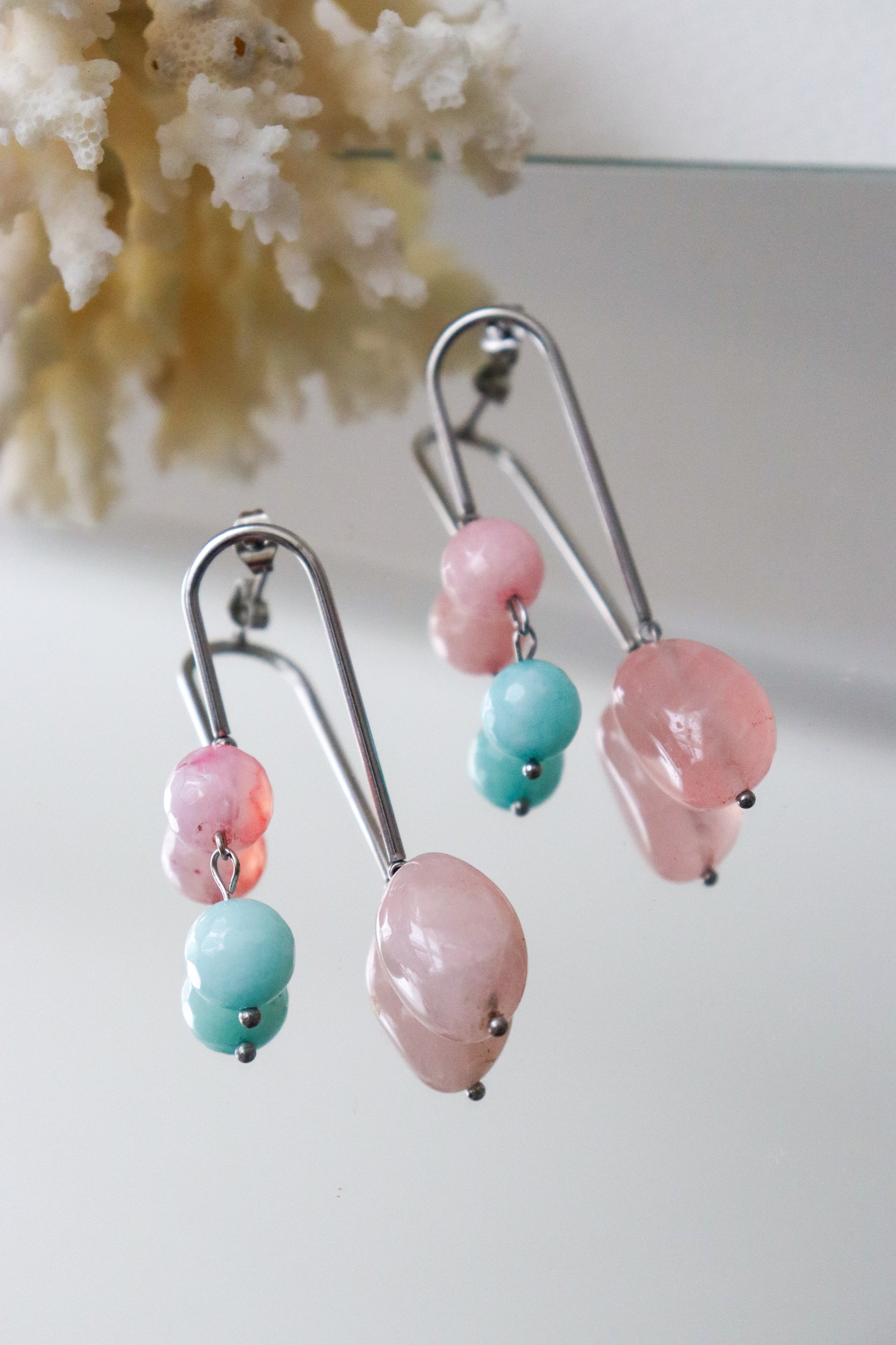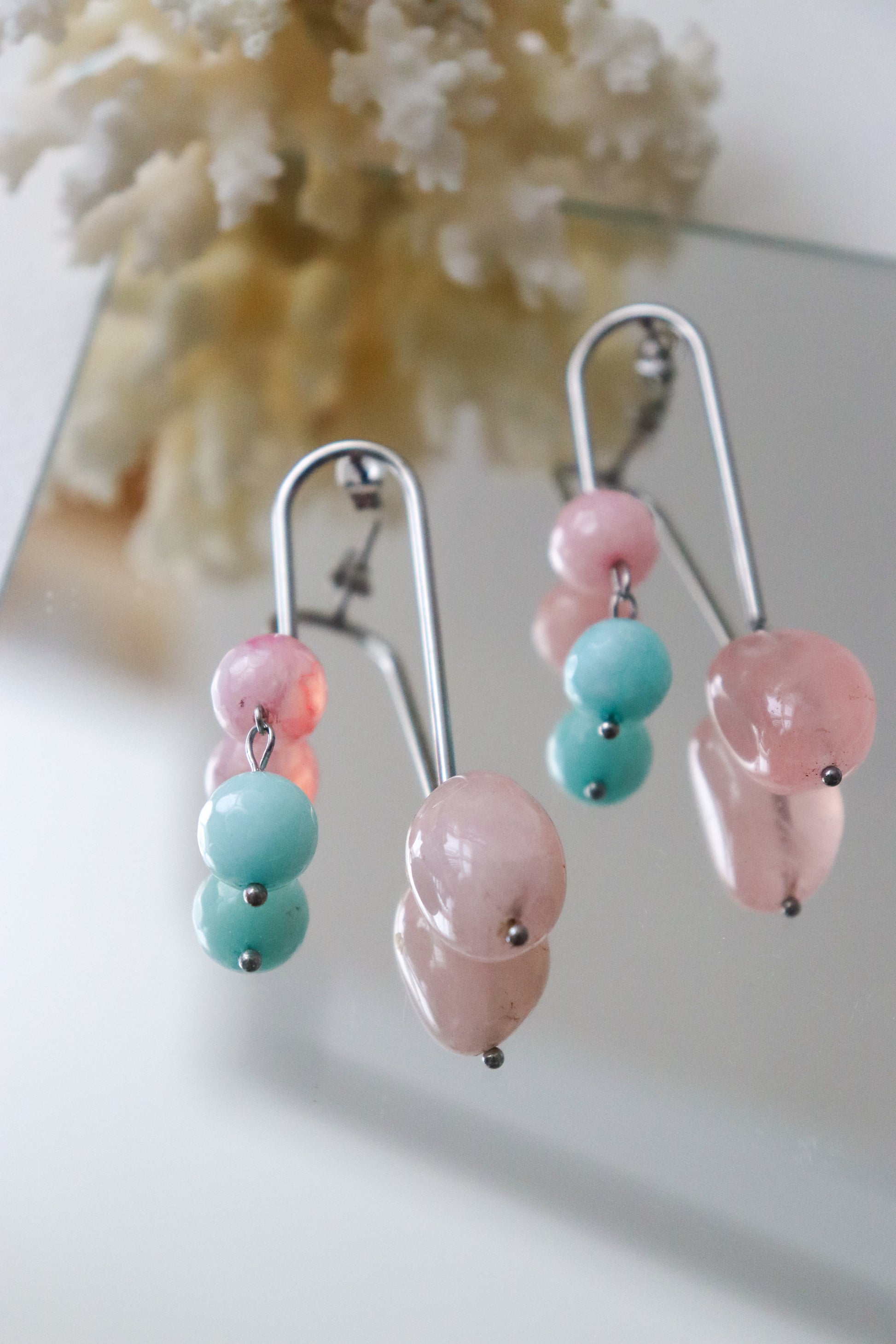 Elegant earrings hand made from semi-precious stones, beads and sweetwater pearls in a variety of designs