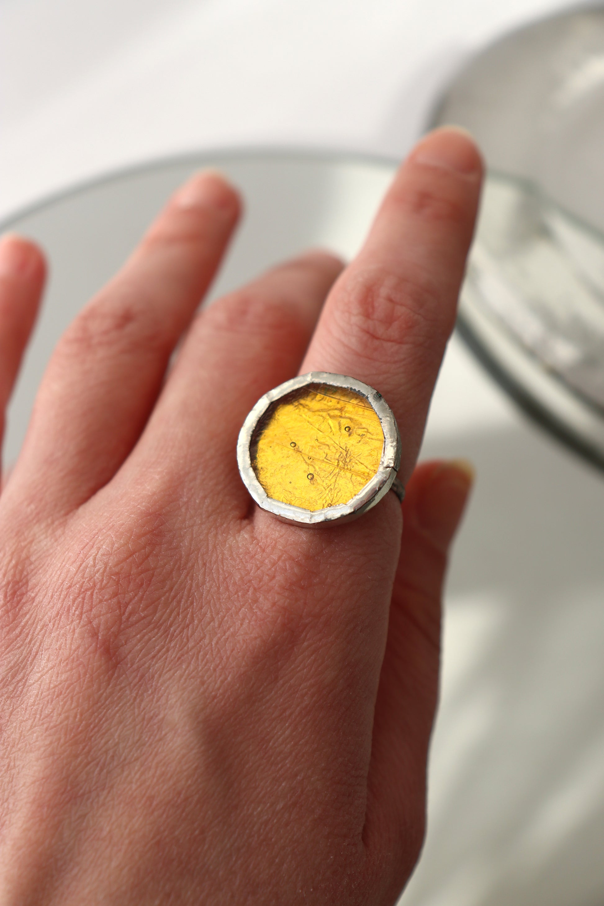 Glass is covered in lead-free solder with nickel free metal adjustable ring